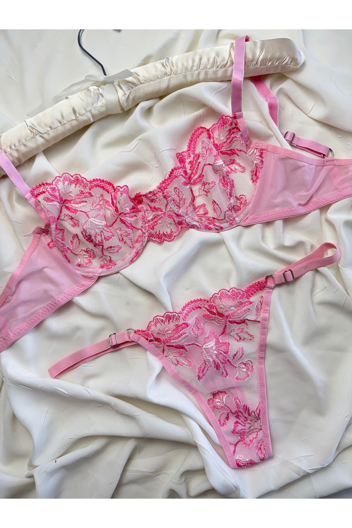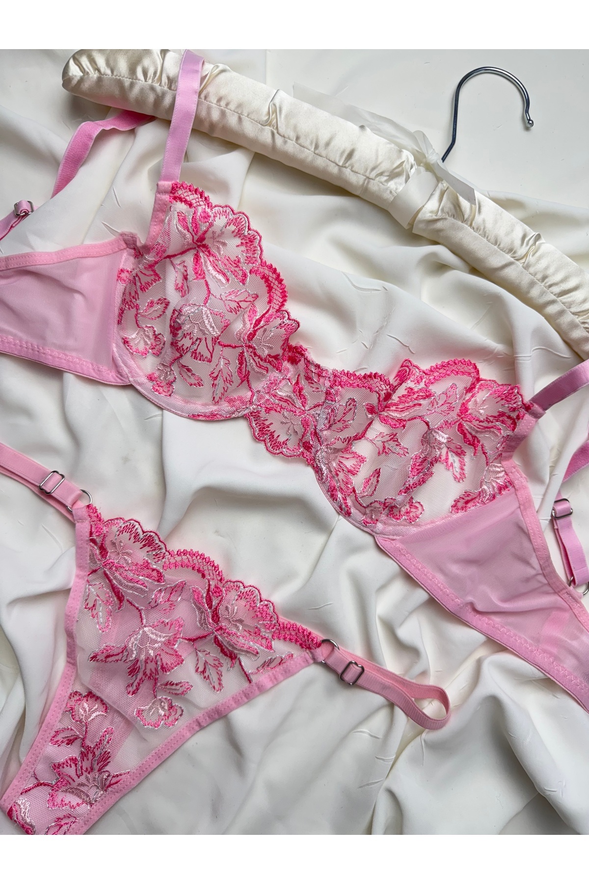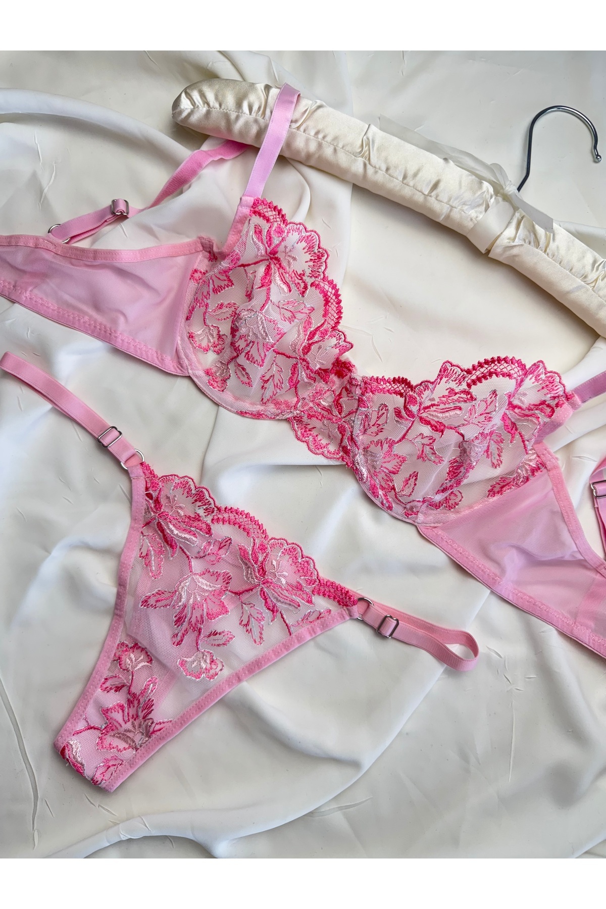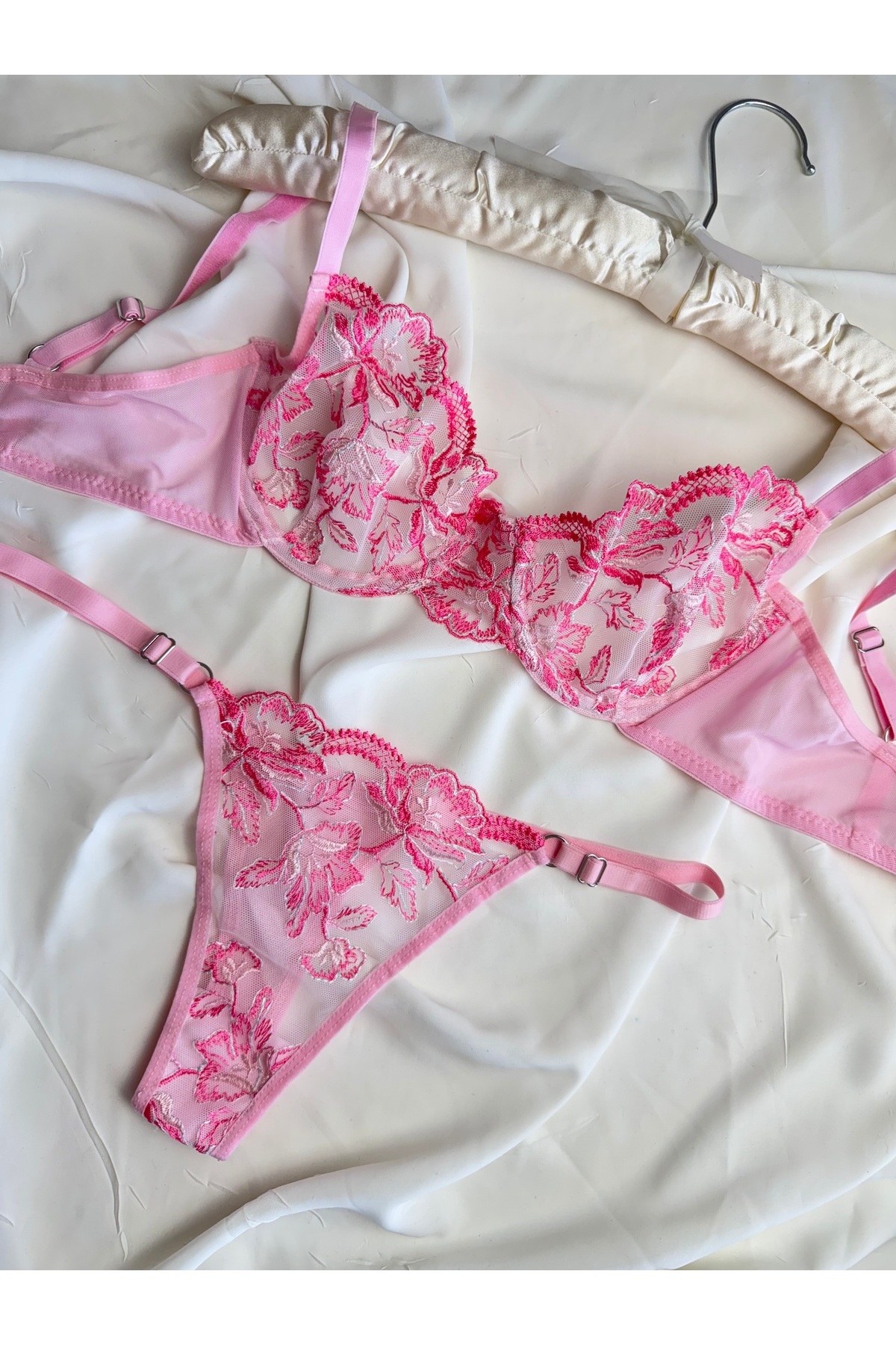 Çiçek Desenli Transparan Bralet Sütyen Takımı Çiçek Desenli Transparan Bralet Sütyen Takımı Zincir 90B