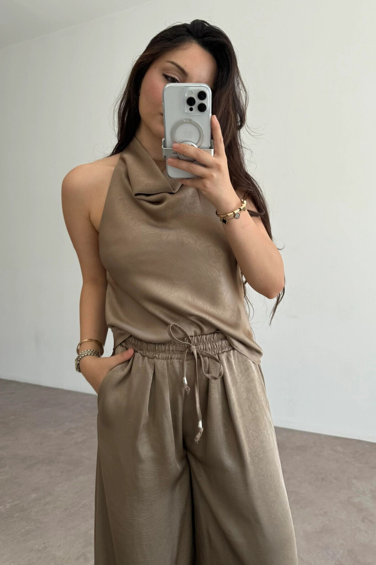 Vizon Saten Bluz Pantolon Takım - 51211 Vizon Saten Bluz Pantolon Takım - 51211 Perry - 51211 L
