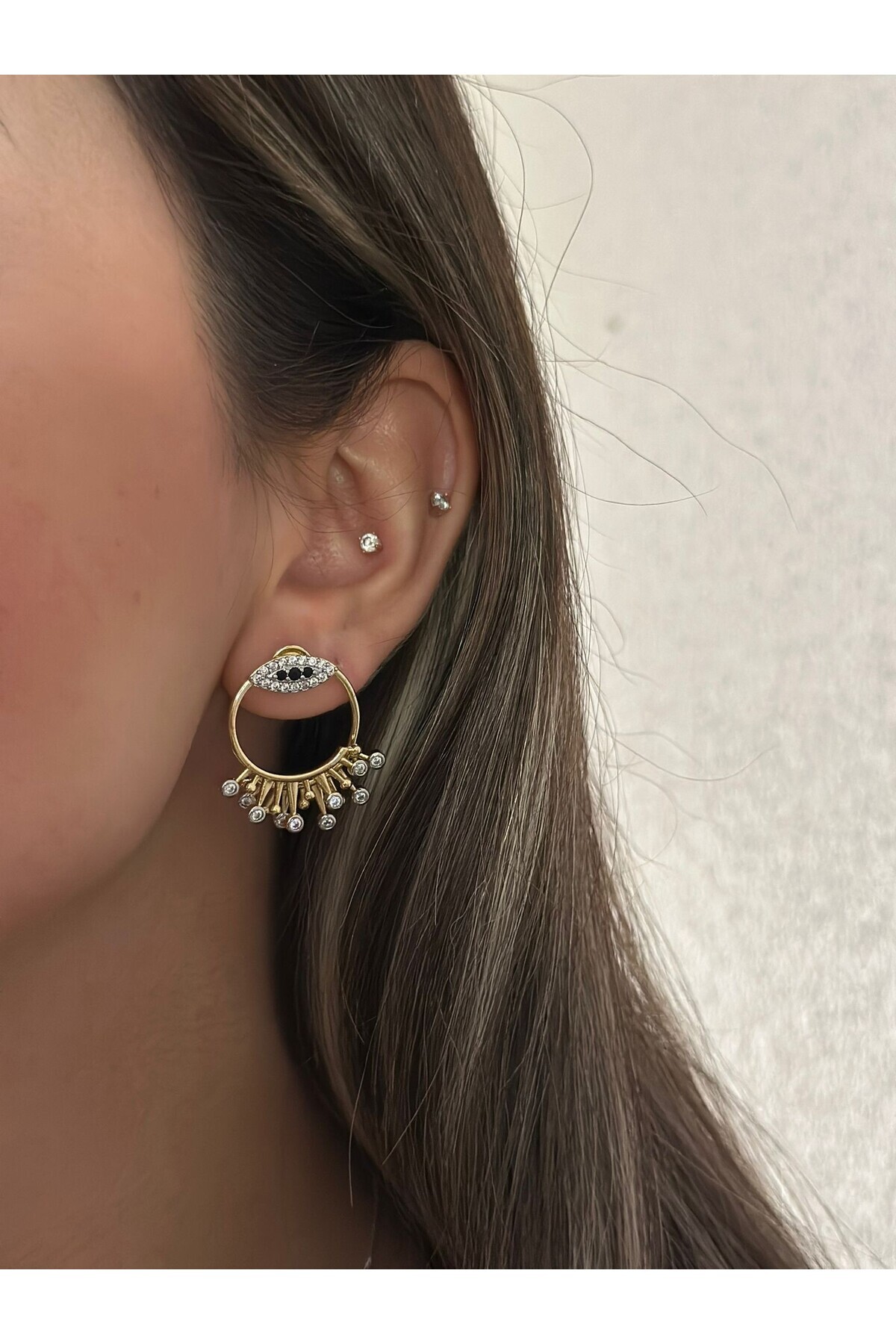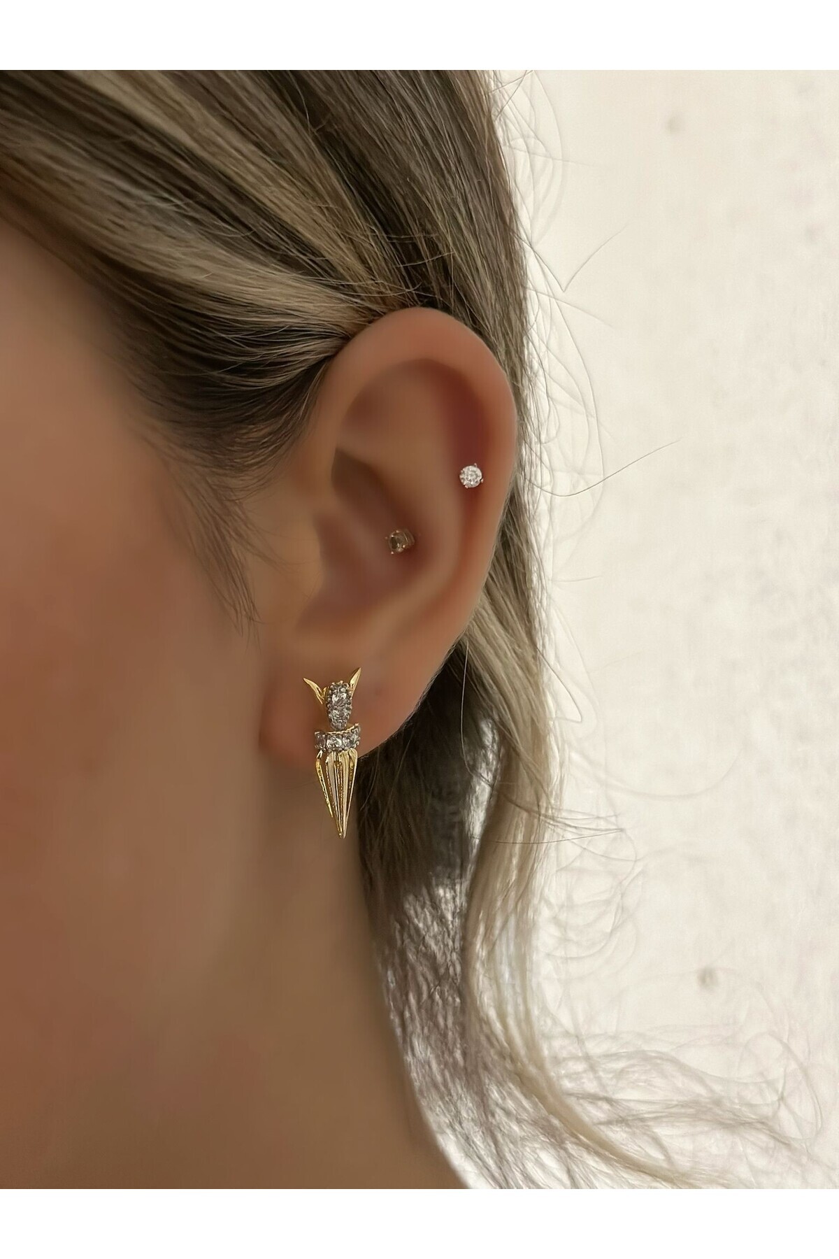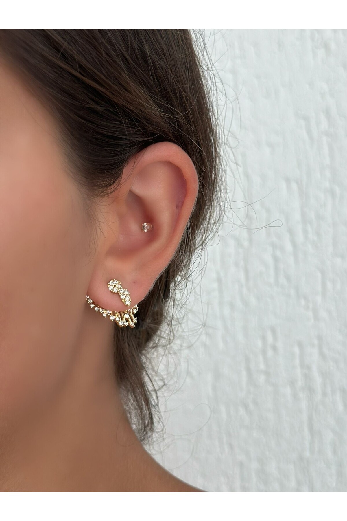 Çift Kullanım Zirkon Taş Detaylı Kanat Küpe (Premium) Çift Kullanım Zirkon Taş Detaylı Kanat Küpe (Premium) Myl0000014718 تک سایز