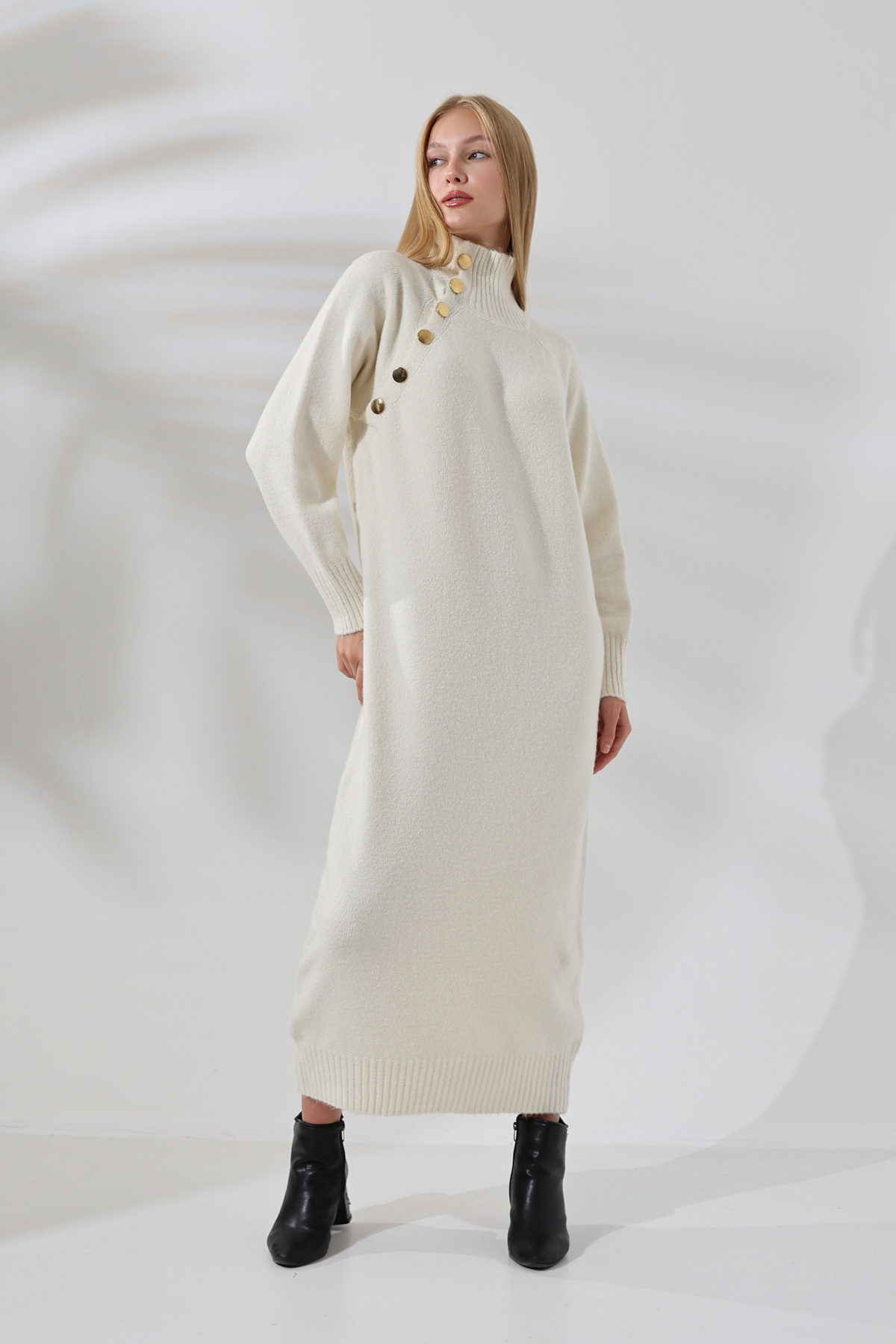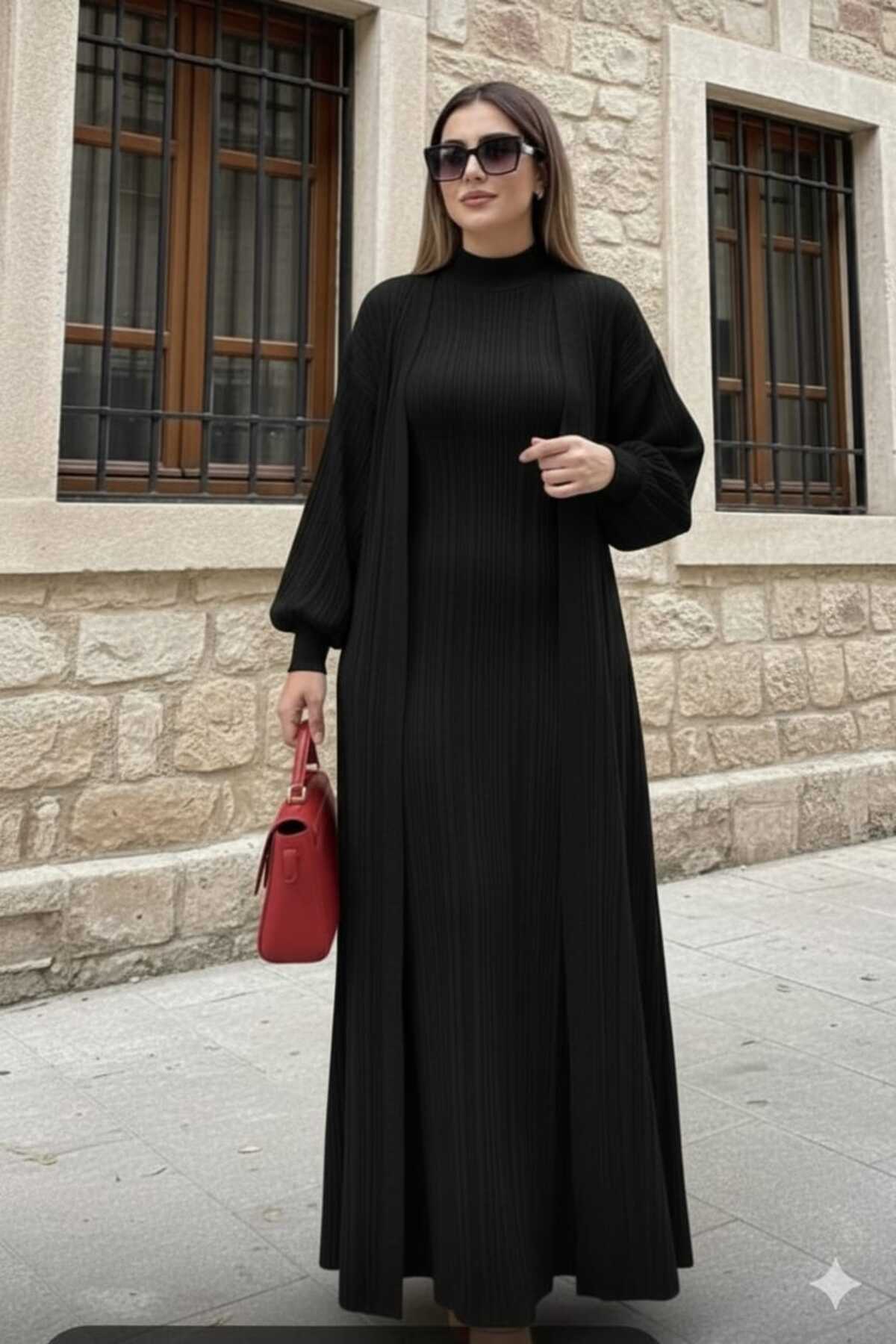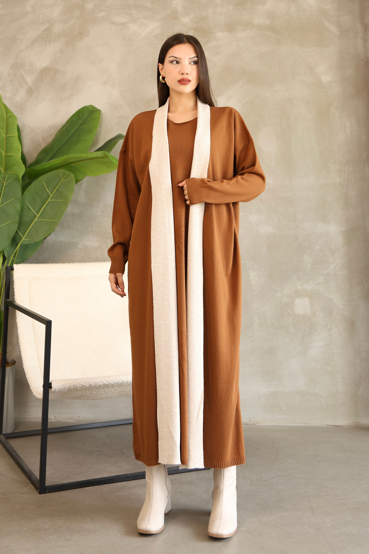 Yuvarlak Bisiklet Şal Yaka Uzun Kol Fiyonk Desenli Midi Boy Hırka Görünümlü Tek Parça Triko Elbise Yuvarlak Bisiklet Şal Yaka Uzun Kol Fiyonk Desenli Midi Boy Hırka Görünümlü Tek Parça Triko Elbise ALCH-00181 Standart
