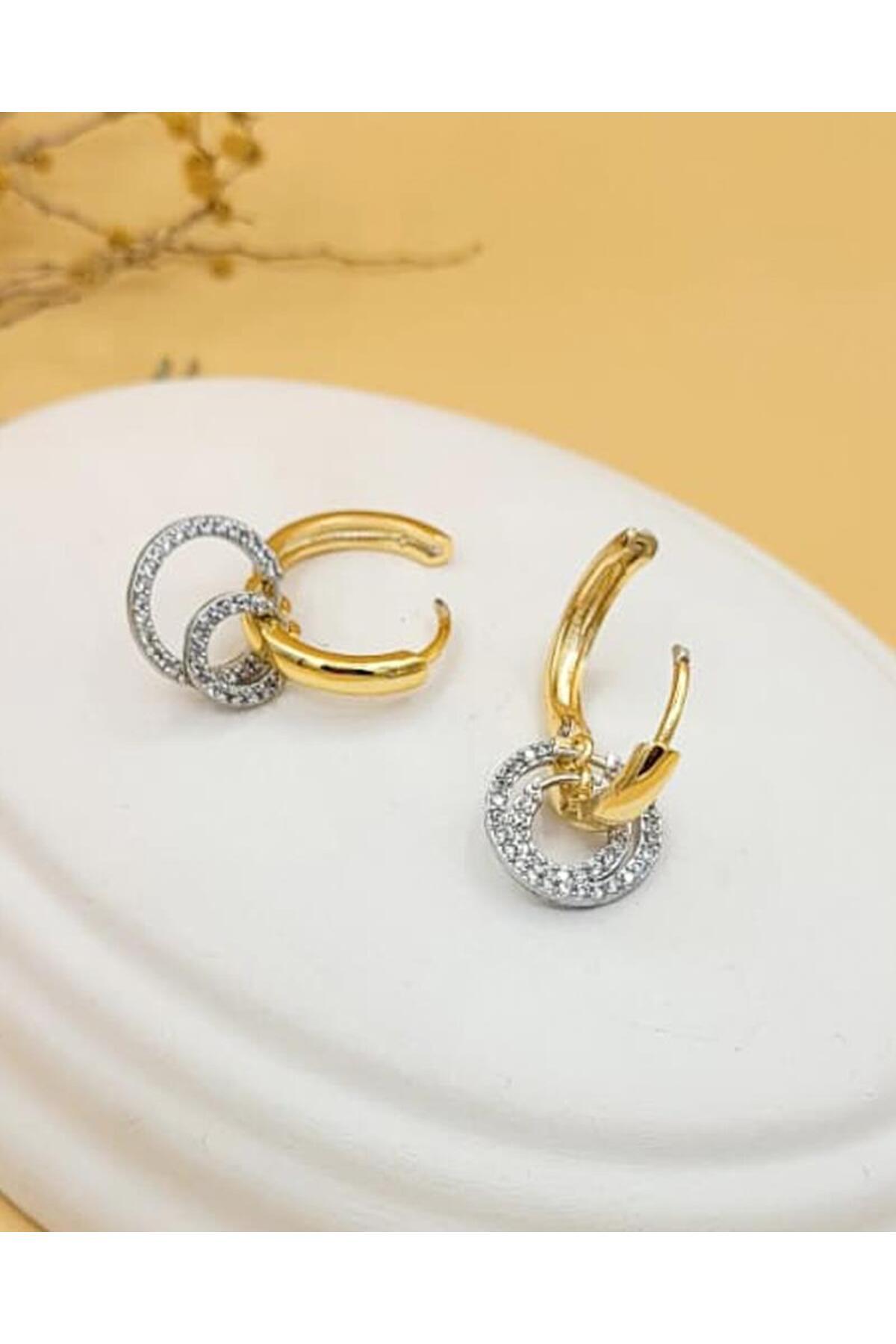 Işıltılı Gold-Silver Çift Halka Küpe Işıltılı Gold-Silver Çift Halka Küpe NV2272 تک سایز