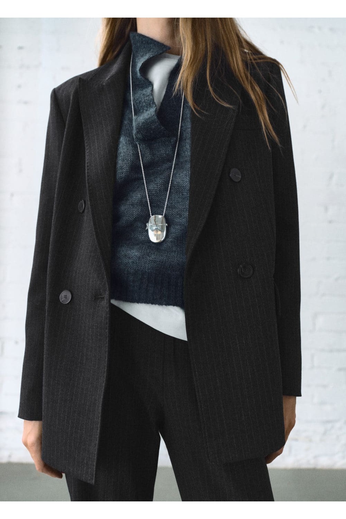 Diplomatik çizgili çift sıra düğmeli blazer ceket takım elbise Diplomatik çizgili çift sıra düğmeli blazer ceket takım elbise 17016366 2XL