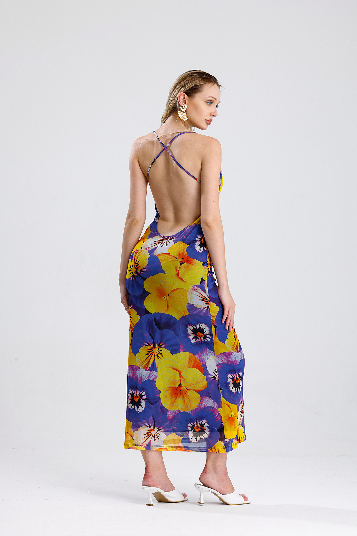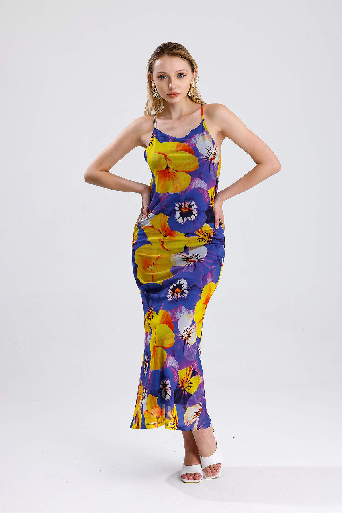 Çiçek Desenli Halter Yaka Astarlı Uzun Elbise | ELB35751 Sarı Mor Menekşe Desen Çiçek Desenli Halter Yaka Astarlı Uzun Elbise | ELB35751 Sarı Mor Menekşe Desen 50