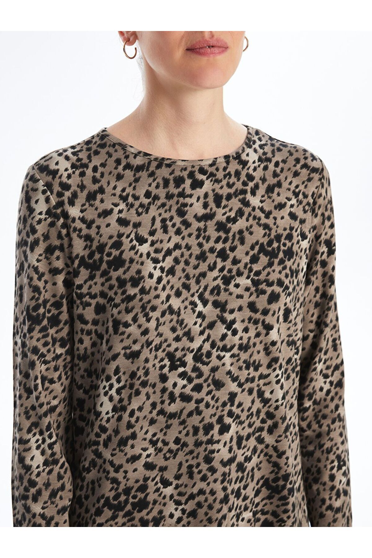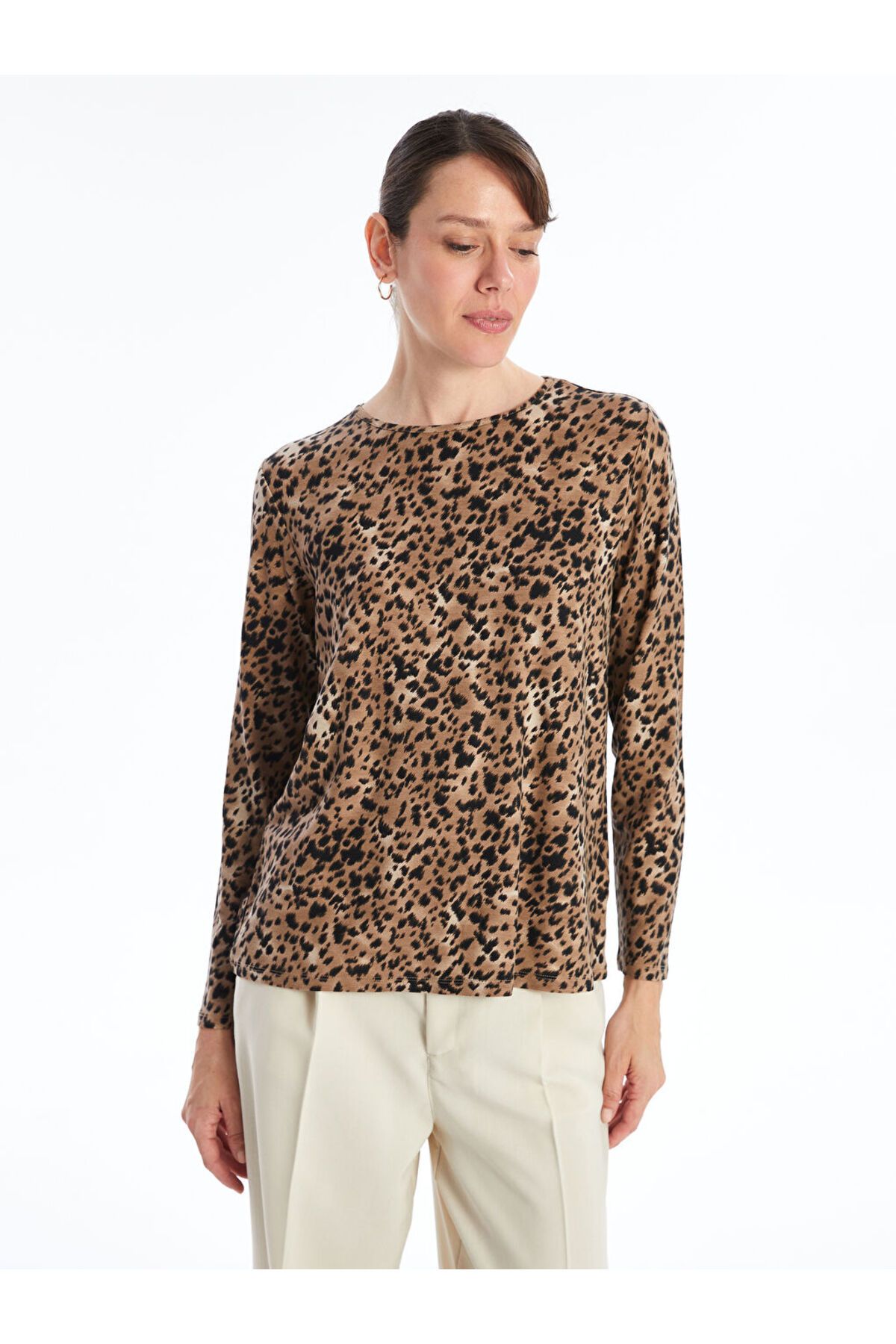 Bisiklet Yaka Leopar Desenli Kadın Tişört Bisiklet Yaka Leopar Desenli Kadın Tişört W4AR43Z8 L