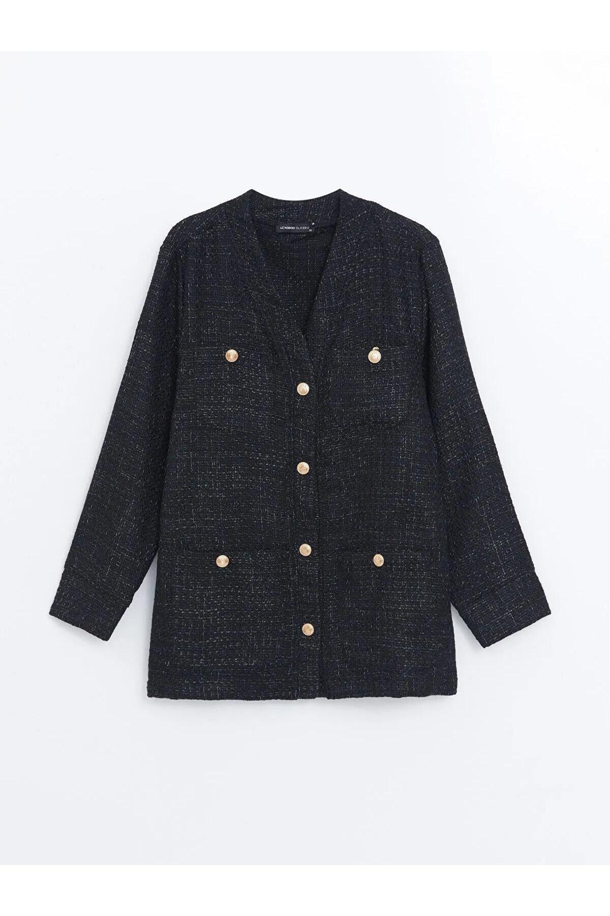 Bisiklet Yaka Ekose Uzun Kollu Kadın Tüvit Blazer Ceket Bisiklet Yaka Ekose Uzun Kollu Kadın Tüvit Blazer Ceket W4IL57Z8 42