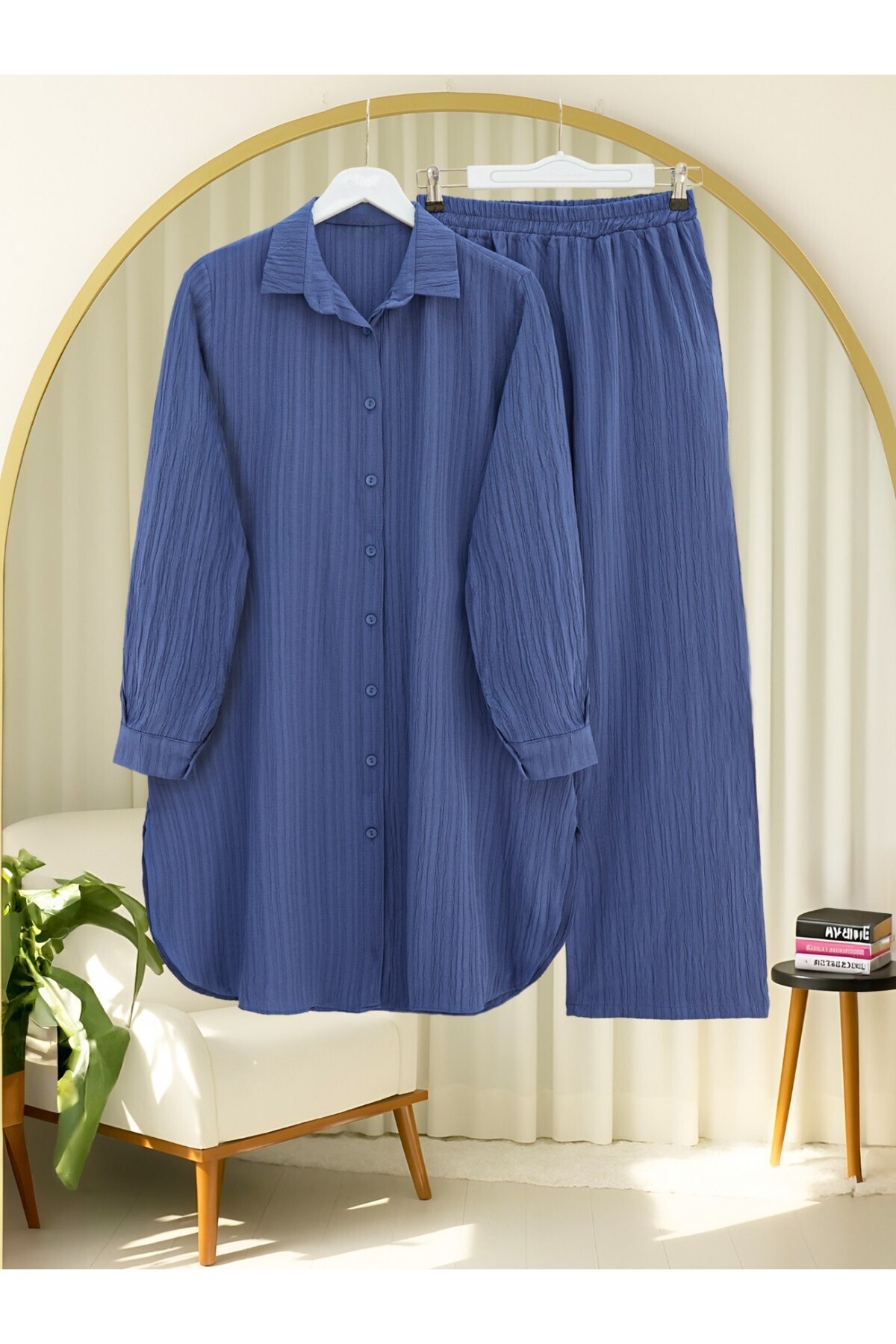 Düğmeli Uzun Pantolonlu Krinkıl Takım -Gri Düğmeli Uzun Pantolonlu Krinkıl Takım -Gri TY349-7074 42