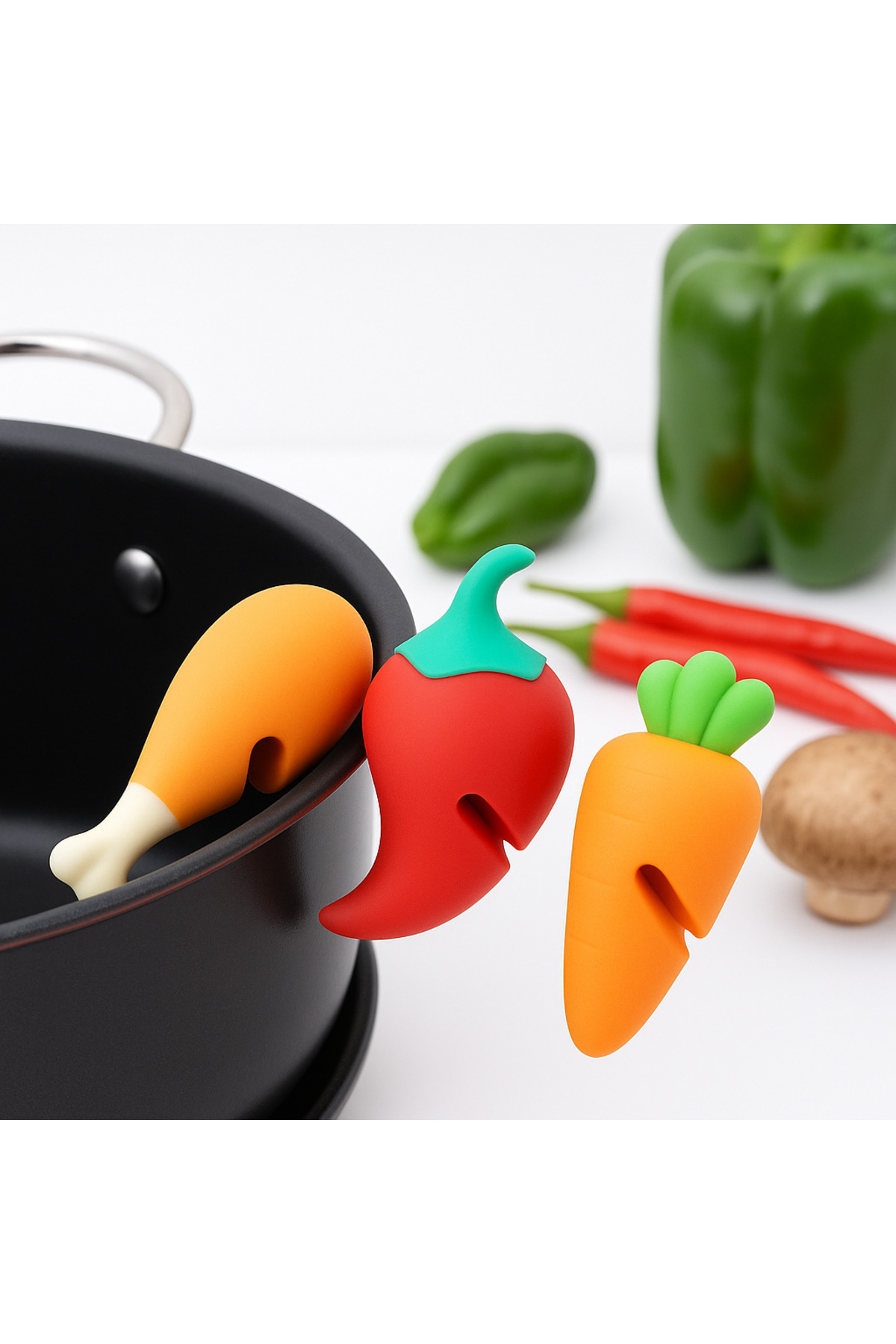 Tencere Tava Taşırma Önleyicisi 3’Lü Set -Biber Havuç But Üçlüsü Kapak Tutucu Tencere Tava Taşırma Önleyicisi 3’Lü Set -Biber Havuç But Üçlüsü Kapak Tutucu ARV-T-001 تک سایز