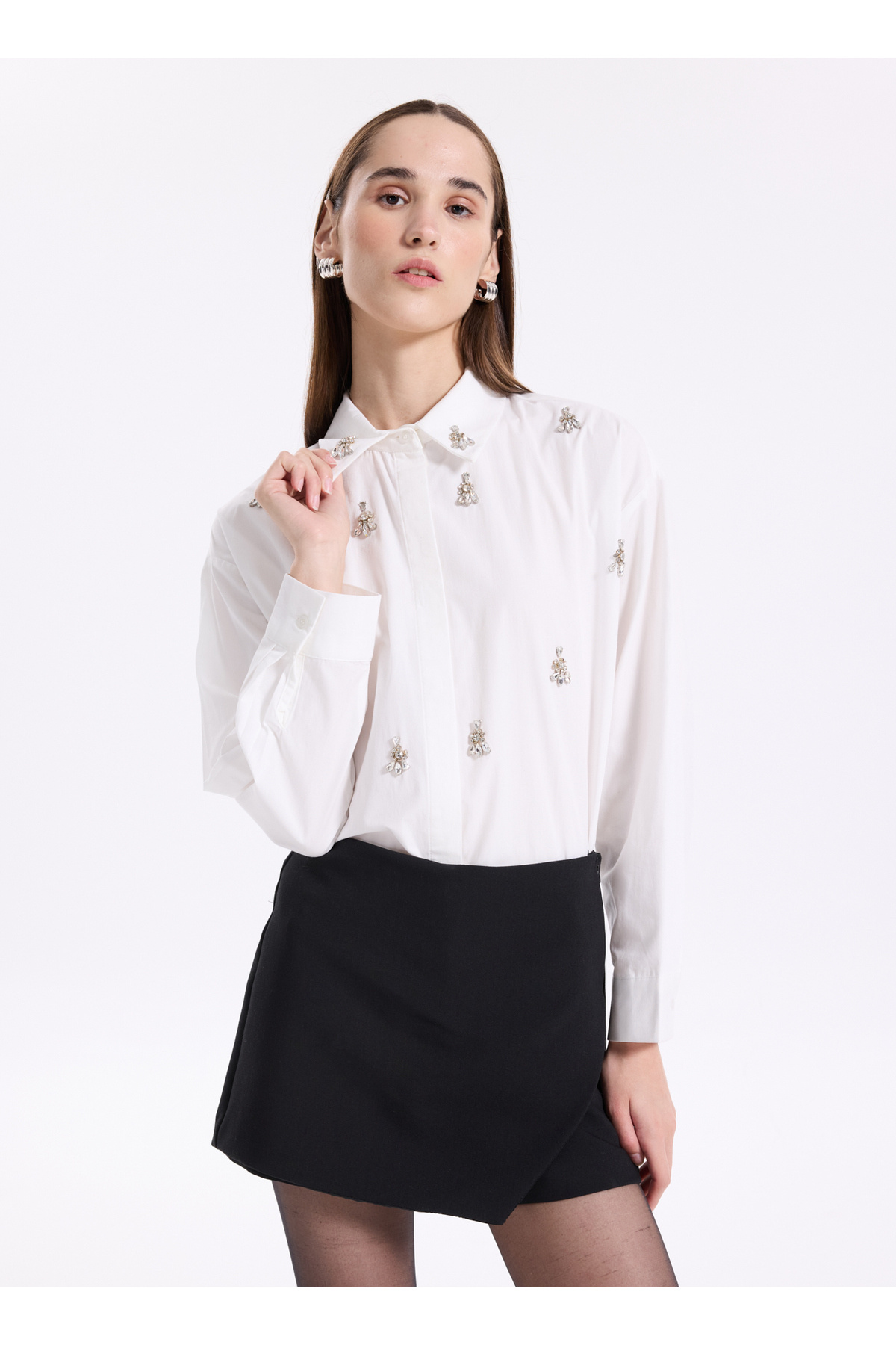 Oversize Gömlek Yaka Taşlı Beyaz Kadın Gömlek F5WL-GML0098 Oversize Gömlek Yaka Taşlı Beyaz Kadın Gömlek F5WL-GML0098 5003273865 42