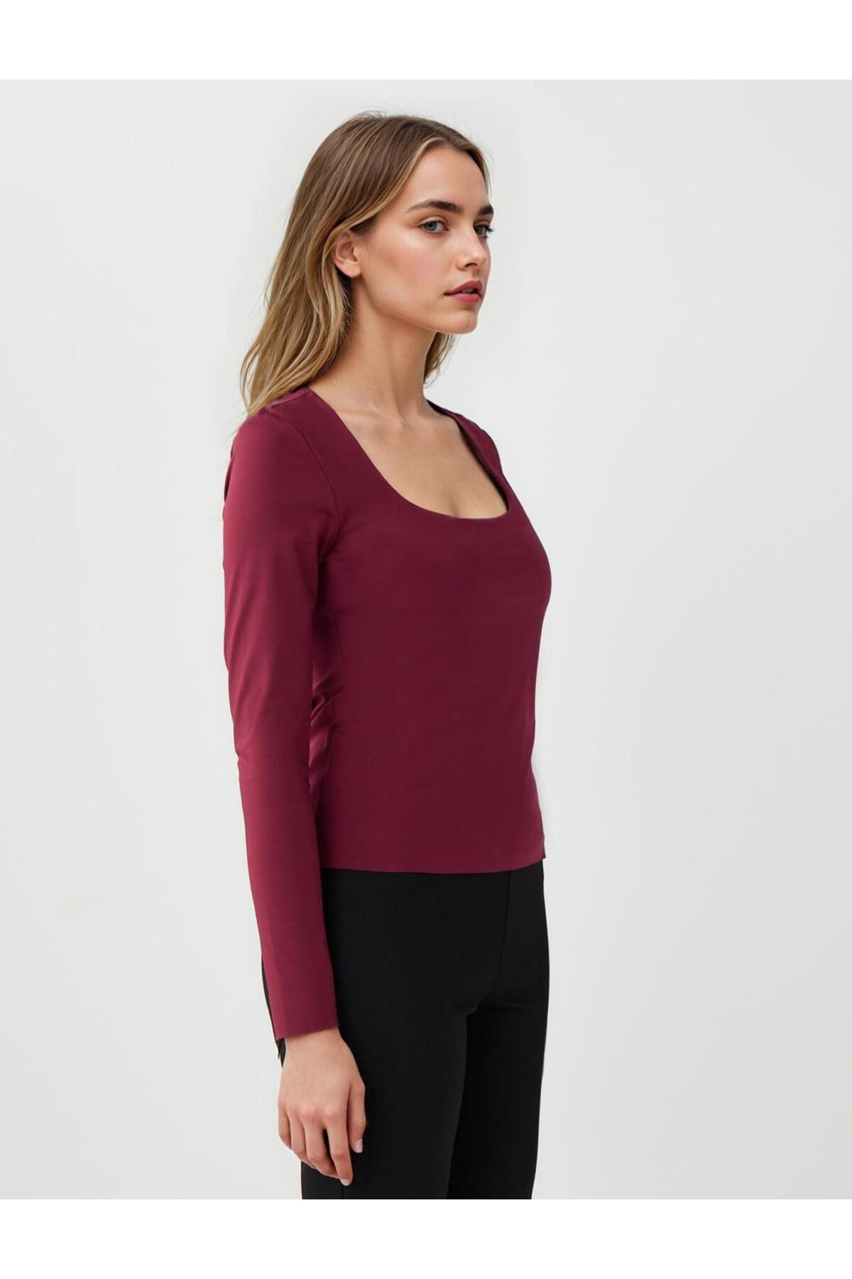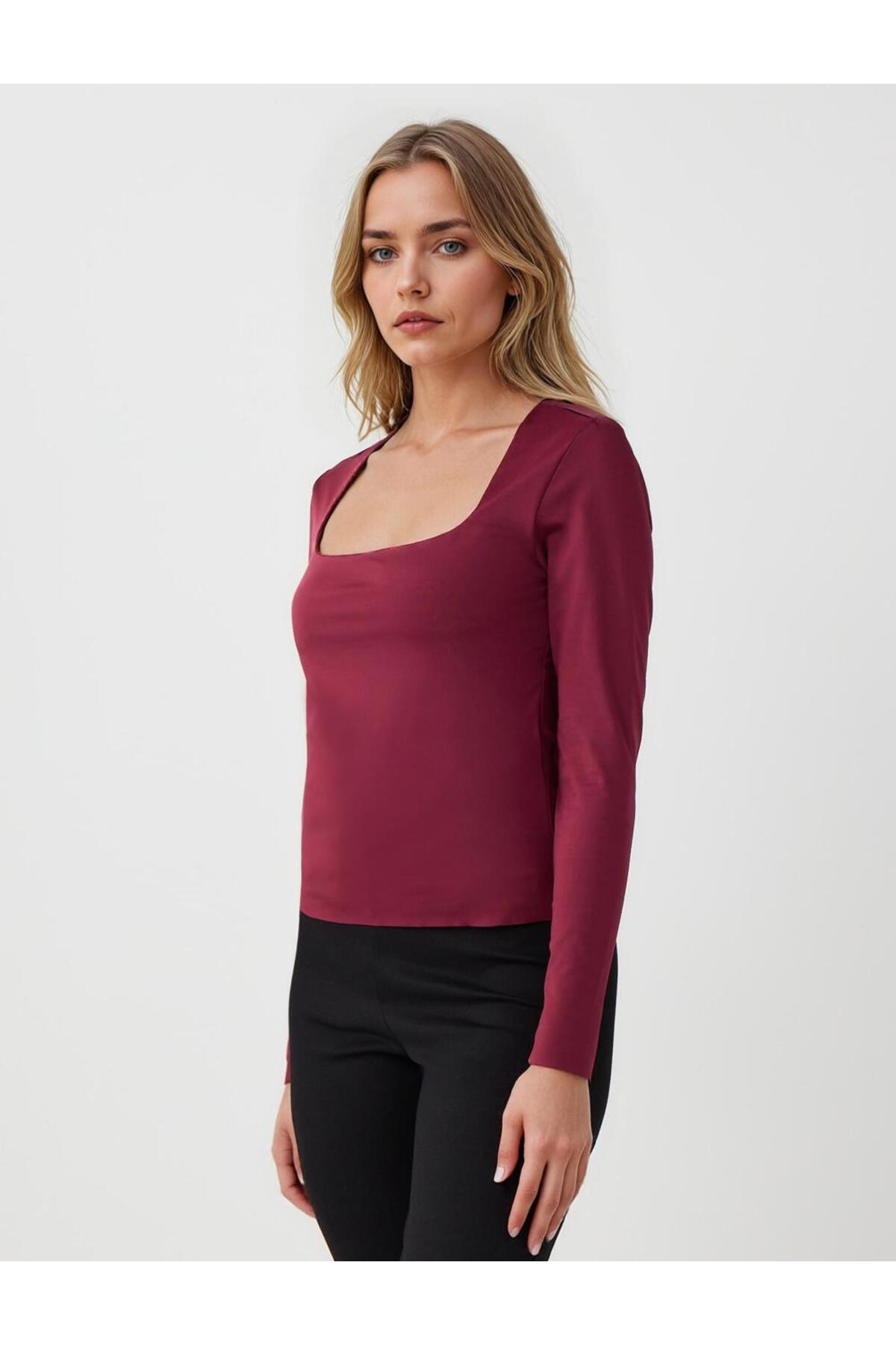Bordo Kare Yaka Dar Kesim Uzun Kollu Örme Bluz Bordo Kare Yaka Dar Kesim Uzun Kollu Örme Bluz 5WW035899 2XL