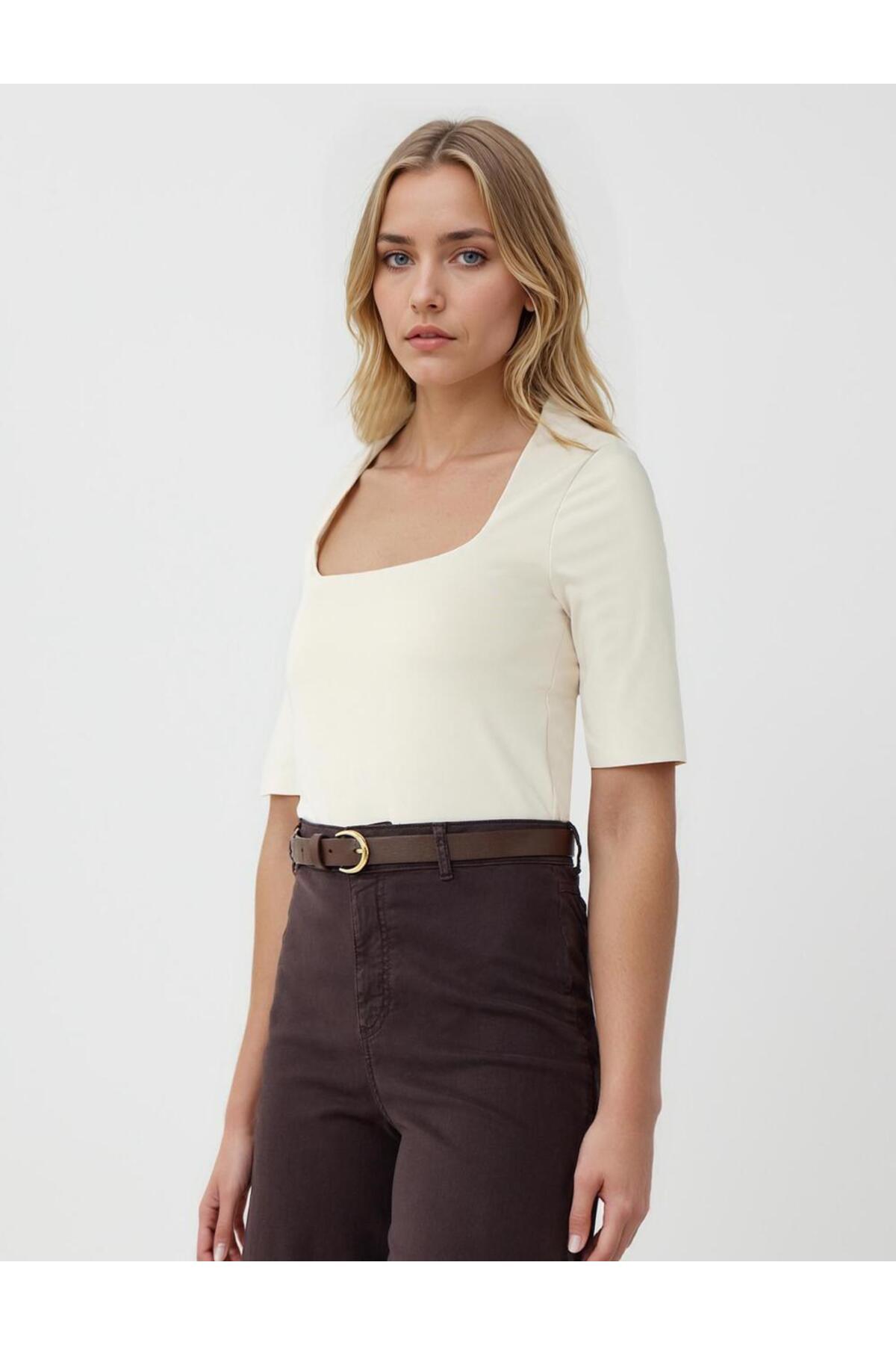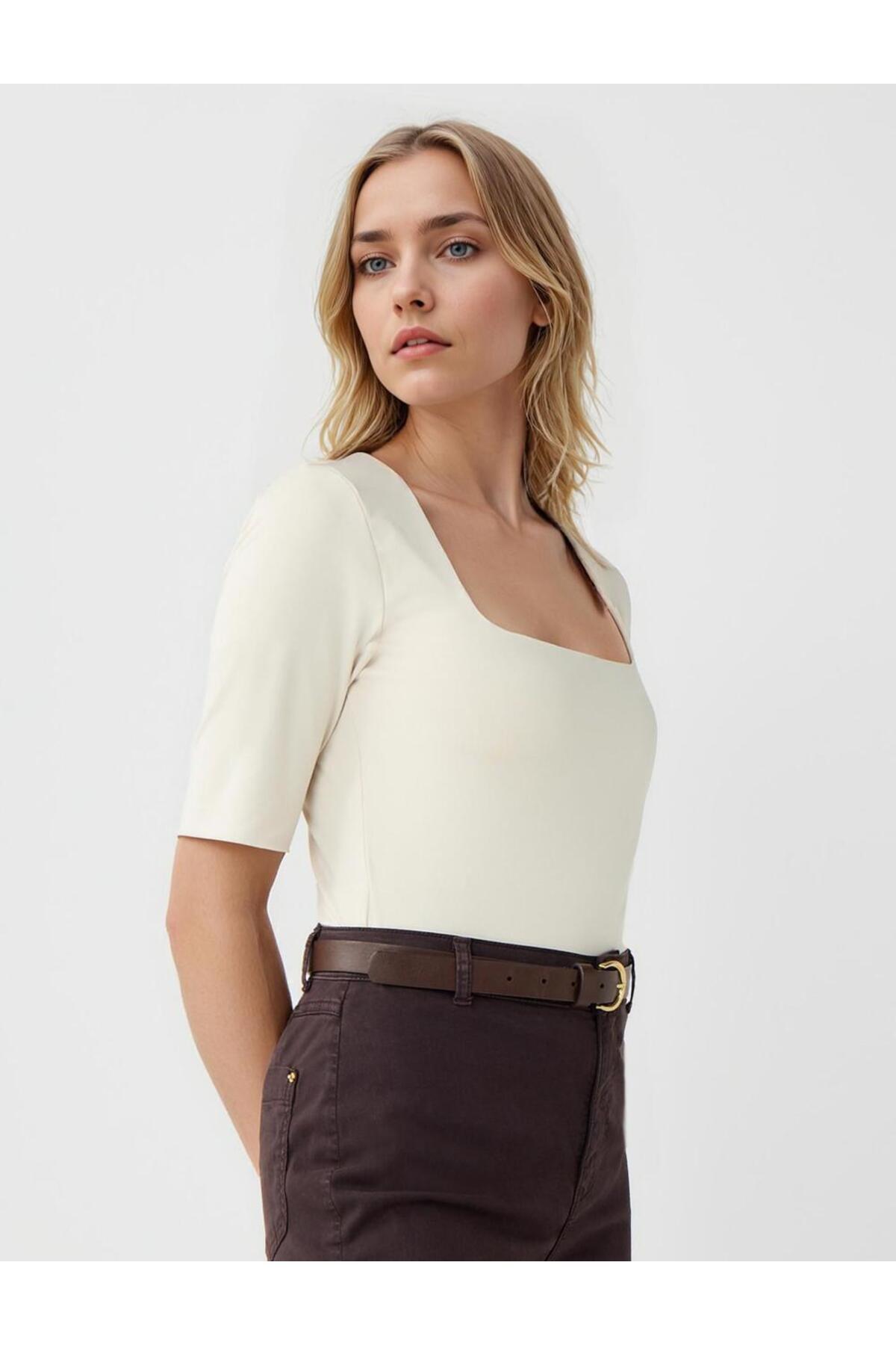 Taş Dar Kesim Kare Yaka Dirsek Kol Örme Bluz Taş Dar Kesim Kare Yaka Dirsek Kol Örme Bluz 5WW035704 2XL