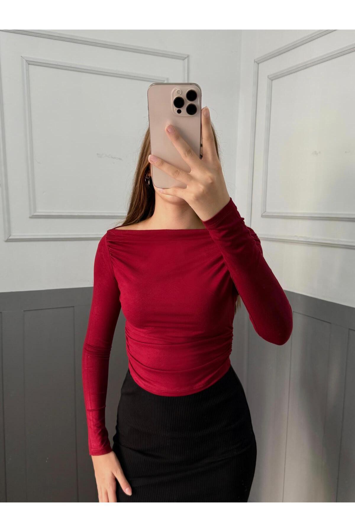 YENİ ÜRÜN Kadın Bordo Omzu Düşük Büzgü Detaylı Viskon Kumaş Uzun Kol Bluz 0024 YENİ ÜRÜN Kadın Bordo Omzu Düşük Büzgü Detaylı Viskon Kumaş Uzun Kol Bluz 0024 2XL