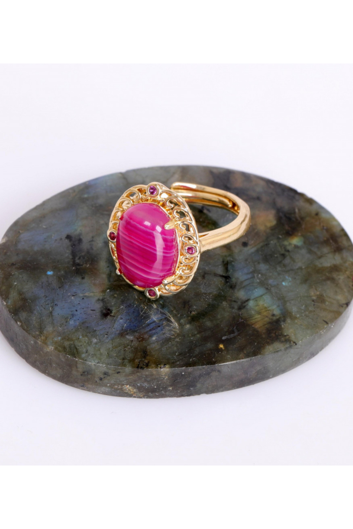 Pembe Akik Taşı Ayarlamalı Yüzük Altın Renkli Pembe Akik Taşı Ayarlamalı Yüzük Altın Renkli yuzuk0011 M