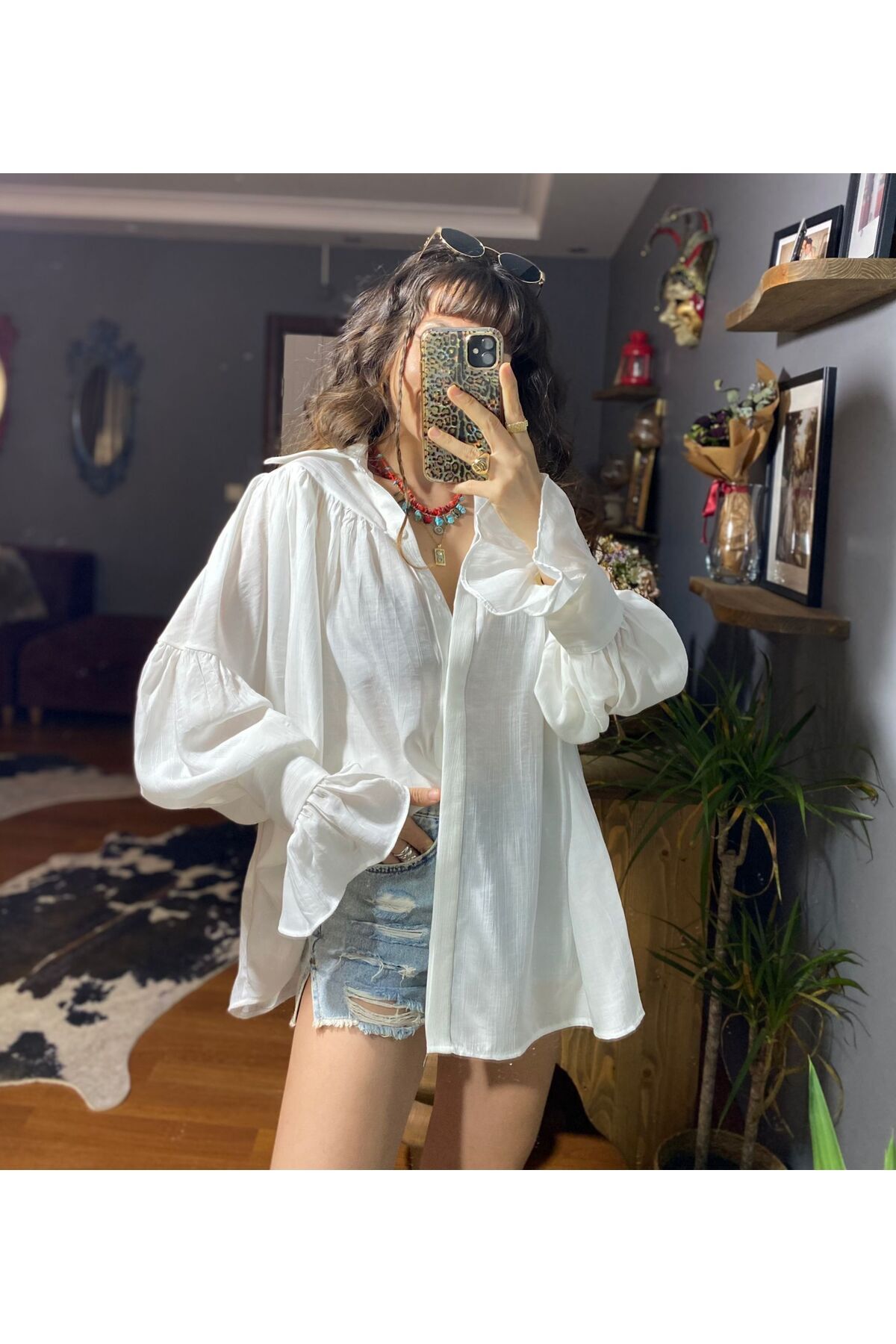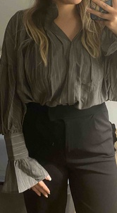 Kadın Antrasit Büzge Ve Kol Detaylı Gömlek Kadın Antrasit Büzge Ve Kol Detaylı Gömlek FMG25-22 XL
