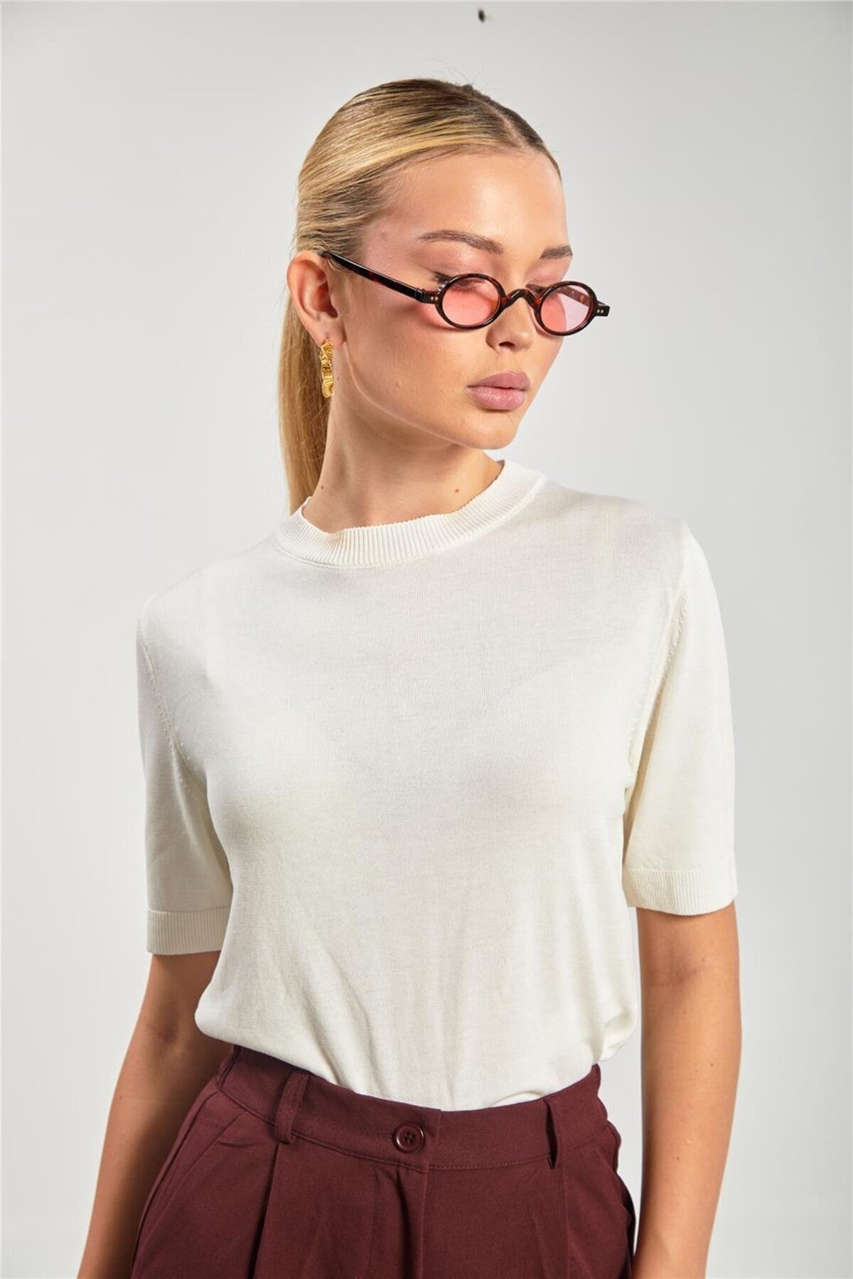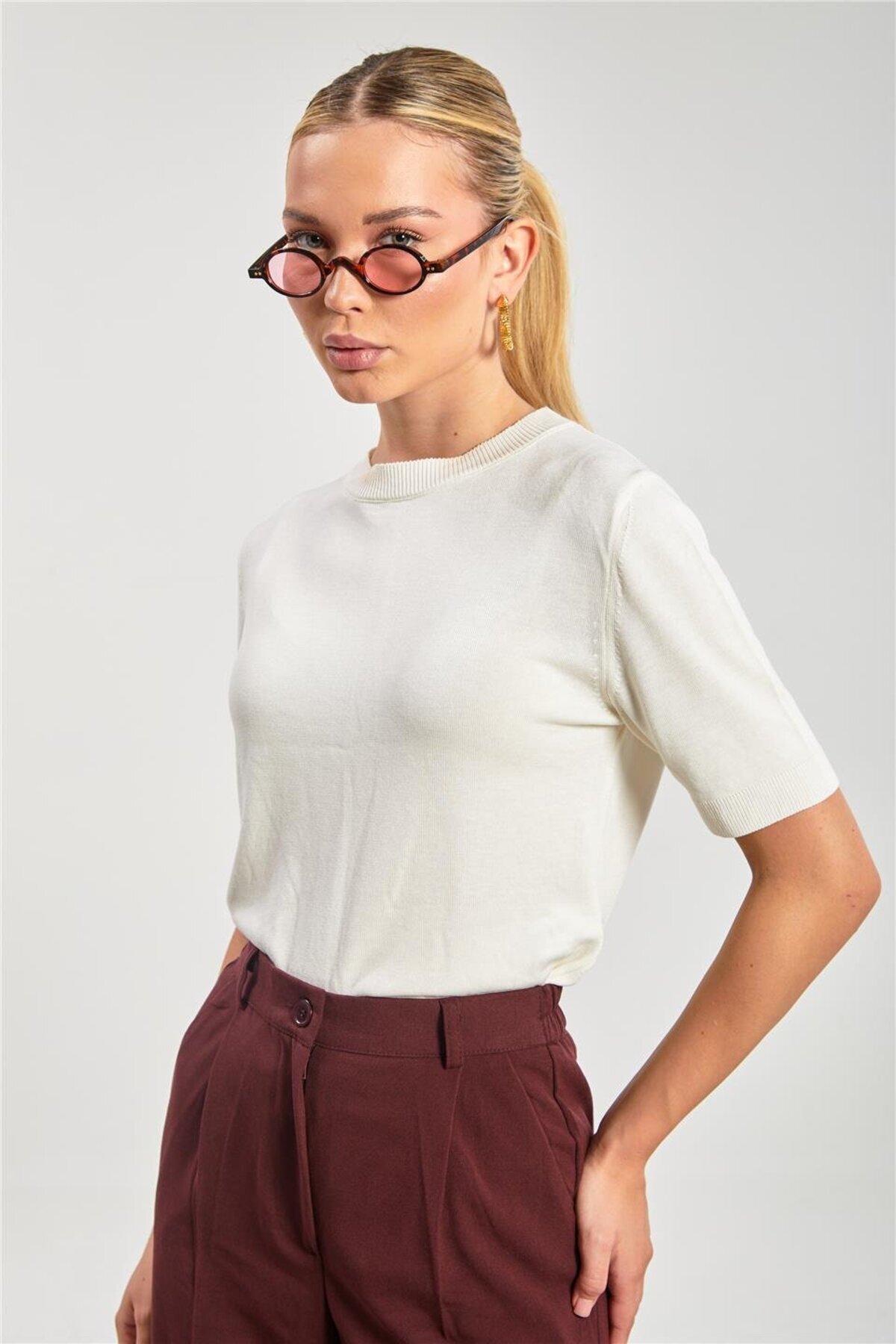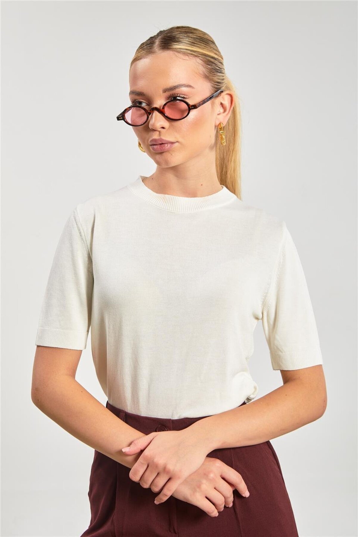 Kadın Kısa Kol Triko Bluz - Ekru Kadın Kısa Kol Triko Bluz - Ekru 274-25K014 Standart