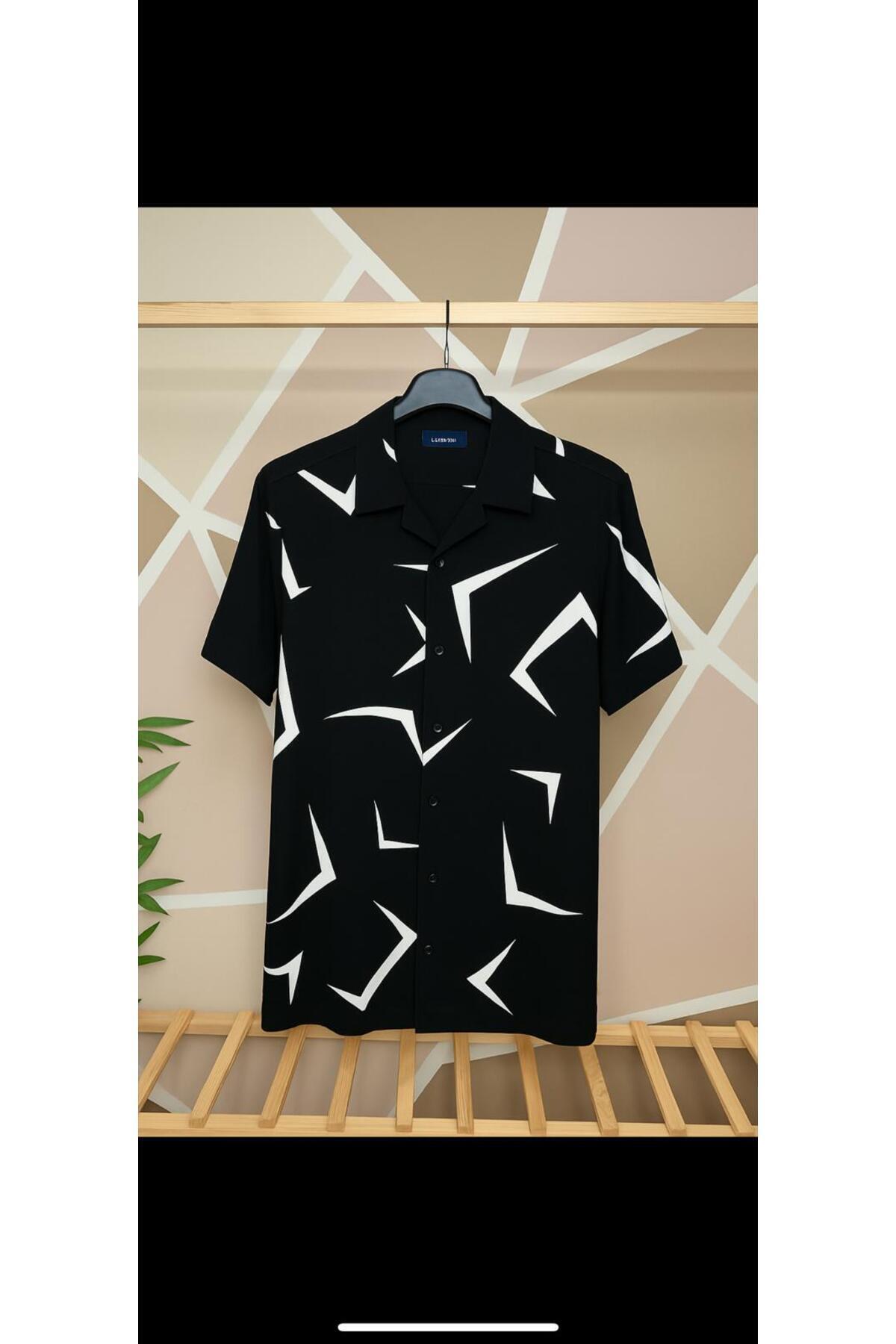 Erkek Regular Rahat Kalıp Apaş Yaka C Desen Viskon Kısa Kollu Gömlek Erkek Regular Rahat Kalıp Apaş Yaka C Desen Viskon Kısa Kollu Gömlek mfz_568 2XL