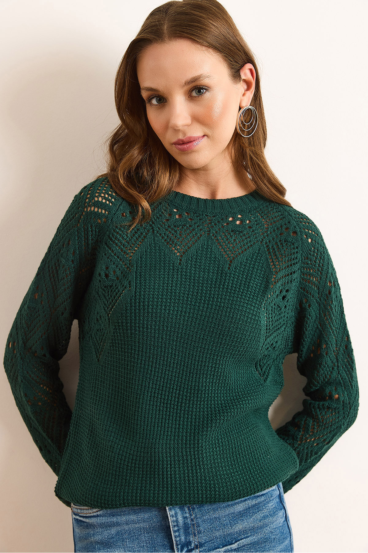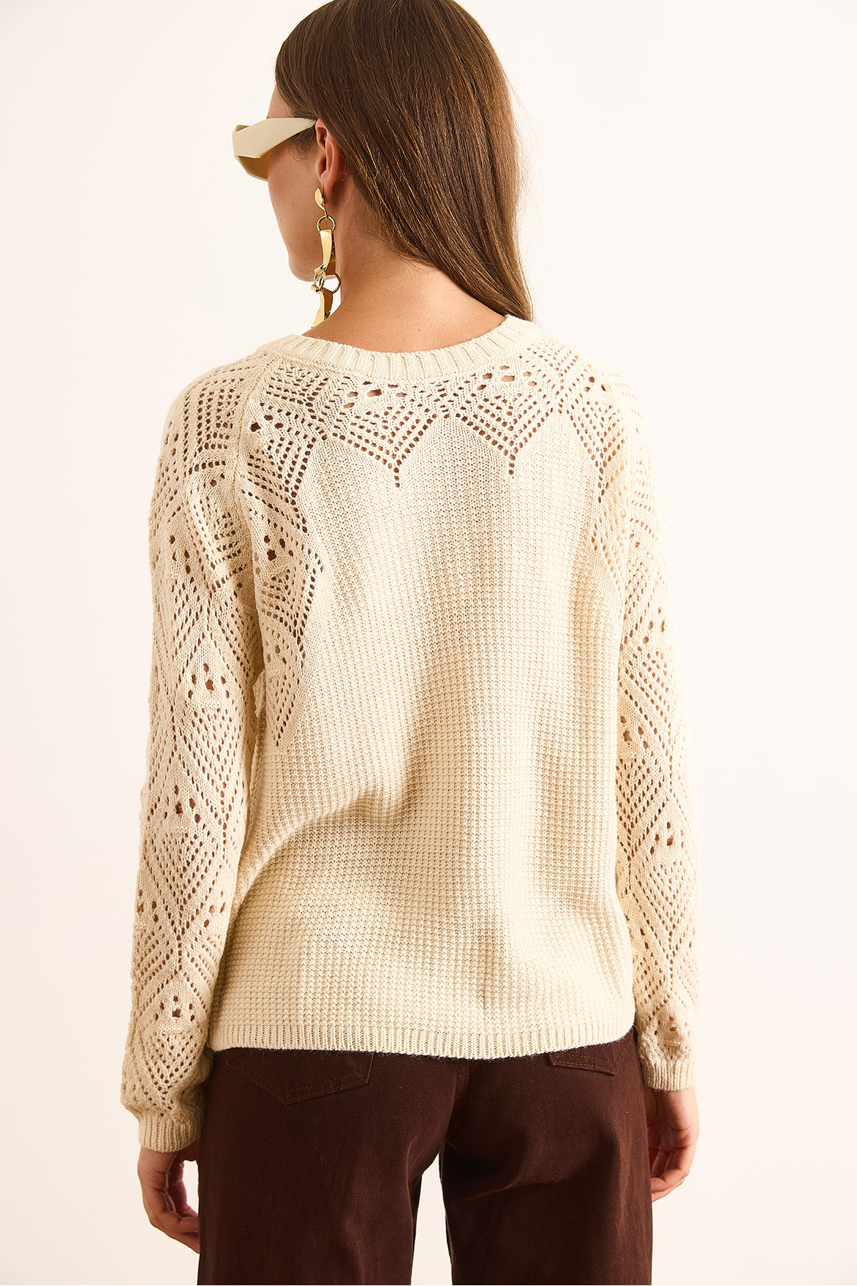 Kadın Ekru Ajur Detaylı Triko Bluz BLZ-19003090 Kadın Ekru Ajur Detaylı Triko Bluz BLZ-19003090 تک سایز