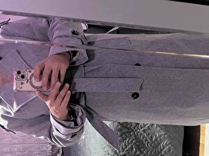 Kaşe Pelerinli Kuşaklı Düğmeli Oversize Kaban Kaşe Pelerinli Kuşaklı Düğmeli Oversize Kaban WV6072356 L