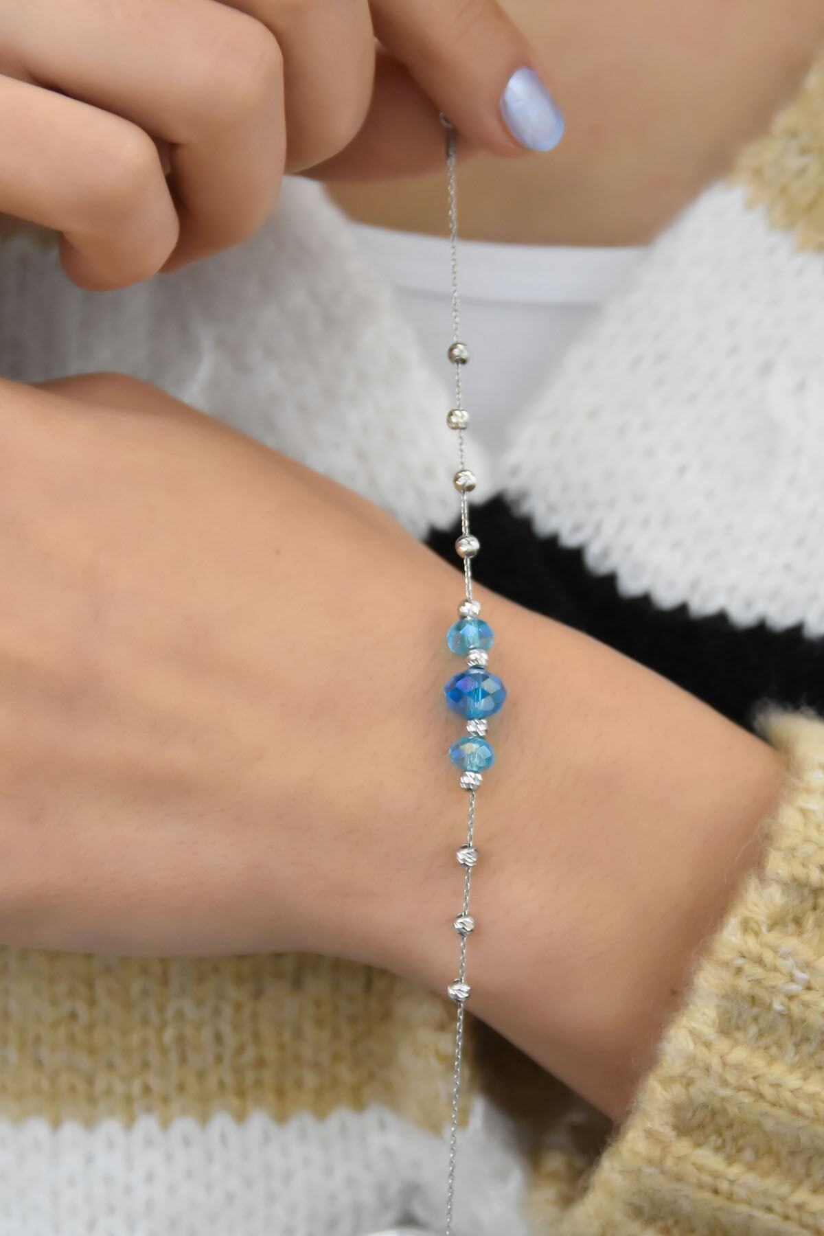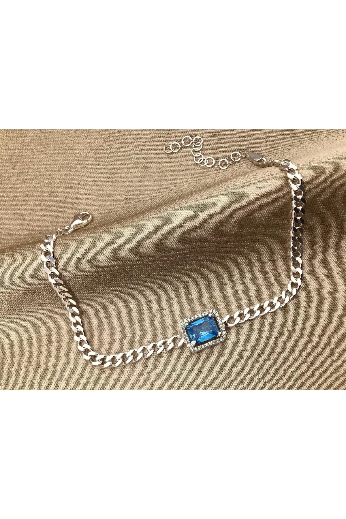 Mavi Taşlı Çiçek Tasarım Bileklik Mavi Taşlı Çiçek Tasarım Bileklik SPB1465 تک سایز