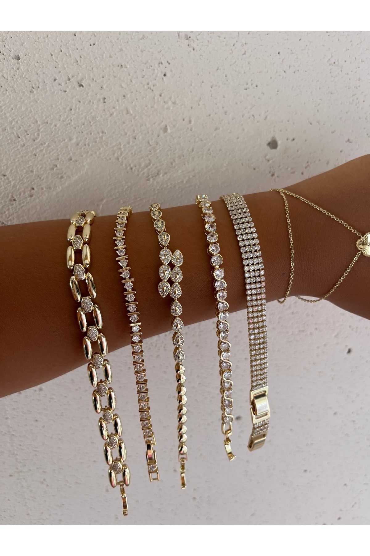 14 K Alın Renk Damla Model Taşlı Kadın Bileklik 14 K Alın Renk Damla Model Taşlı Kadın Bileklik 0181718190 21 cm