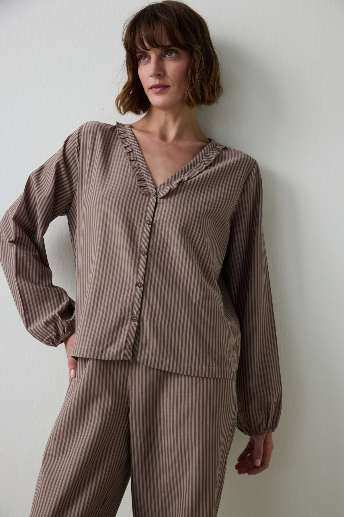 Bej Brownish Ekoseli Gömlek Yaka Pamuklu Bağlama Detaylı Pijama Takımı Bej Brownish Ekoseli Gömlek Yaka Pamuklu Bağlama Detaylı Pijama Takımı PNDDL18T25SK-BG14 XL