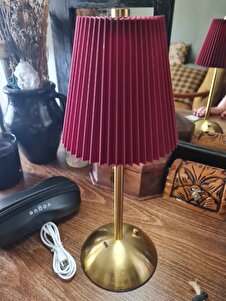 Metal Bordo Dokunmatik Şarjlı Masa Lambası Abajur Metal Bordo Dokunmatik Şarjlı Masa Lambası Abajur MTLKRM1 تک سایز