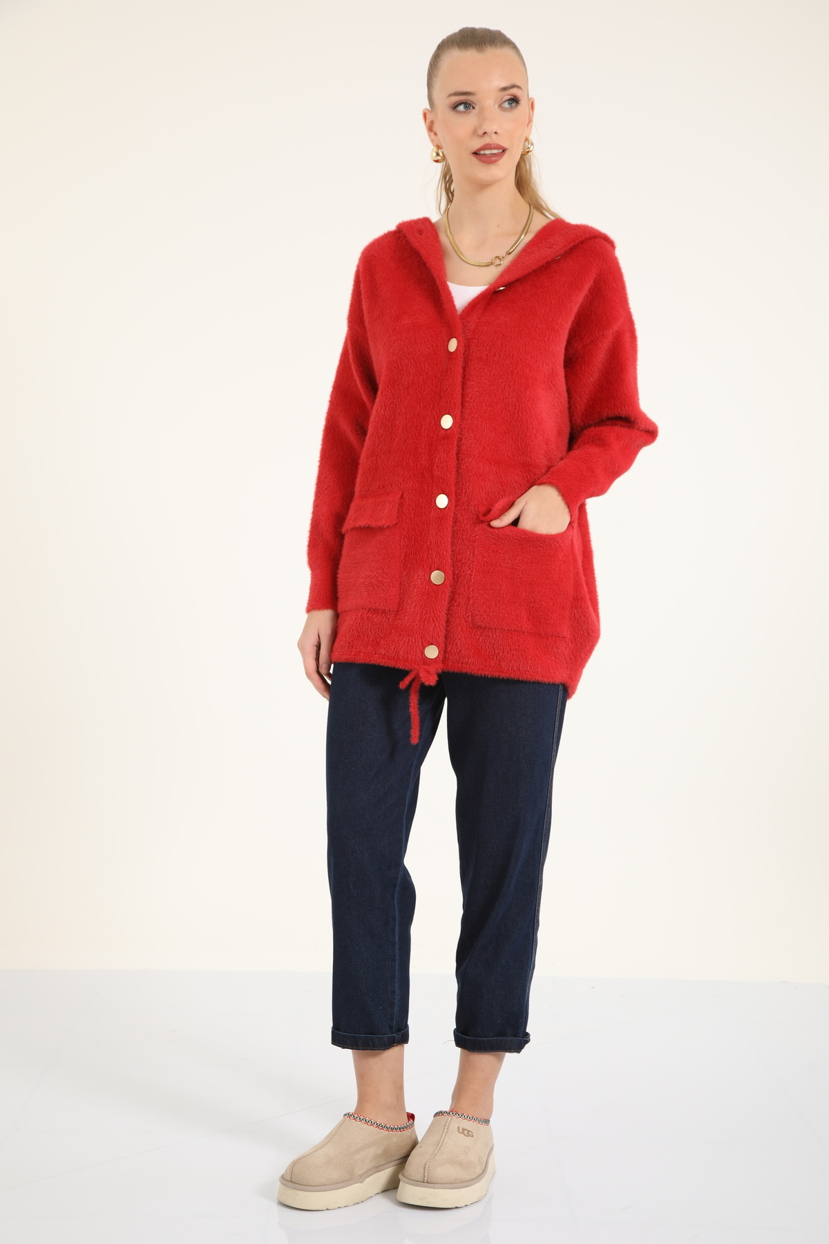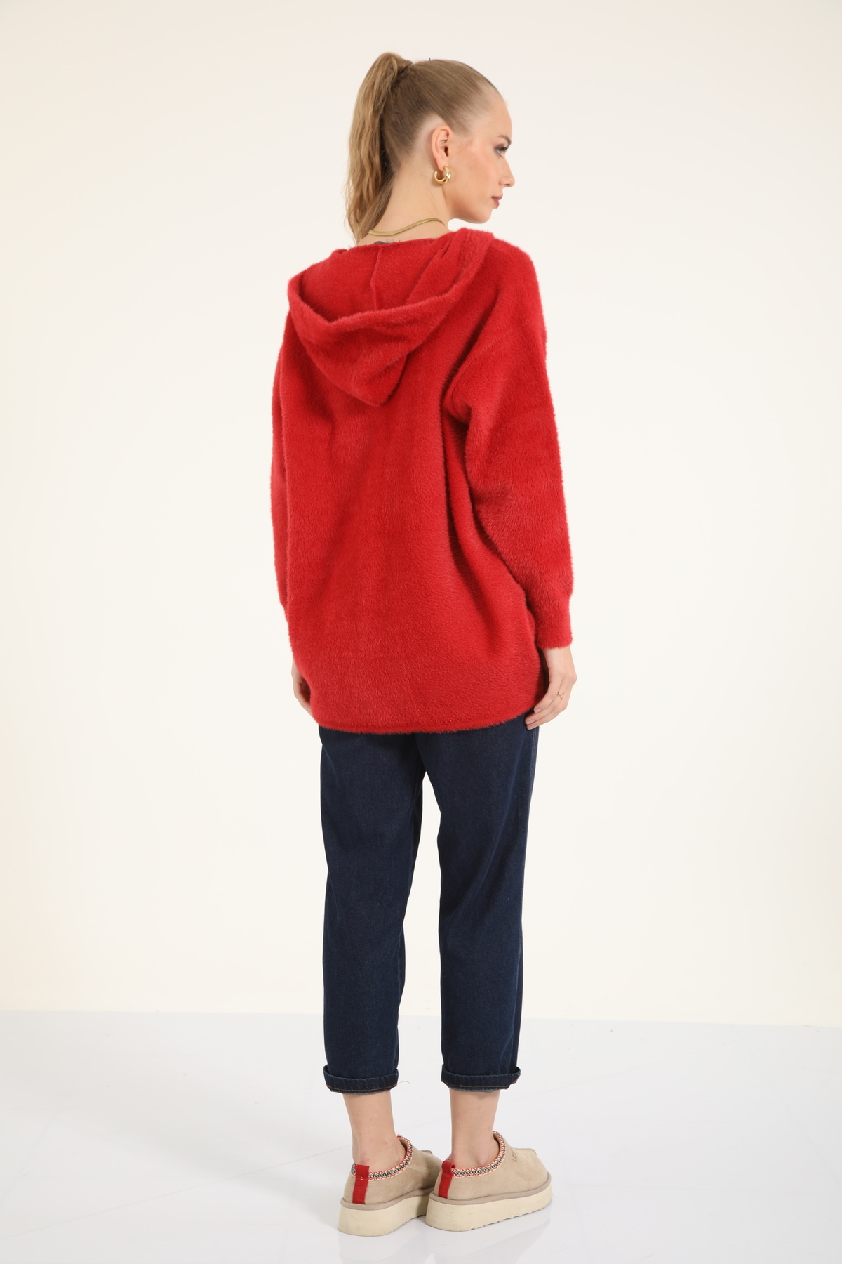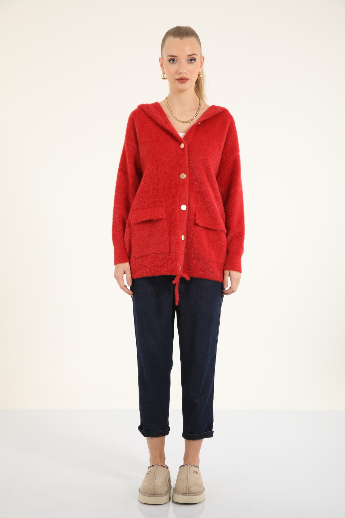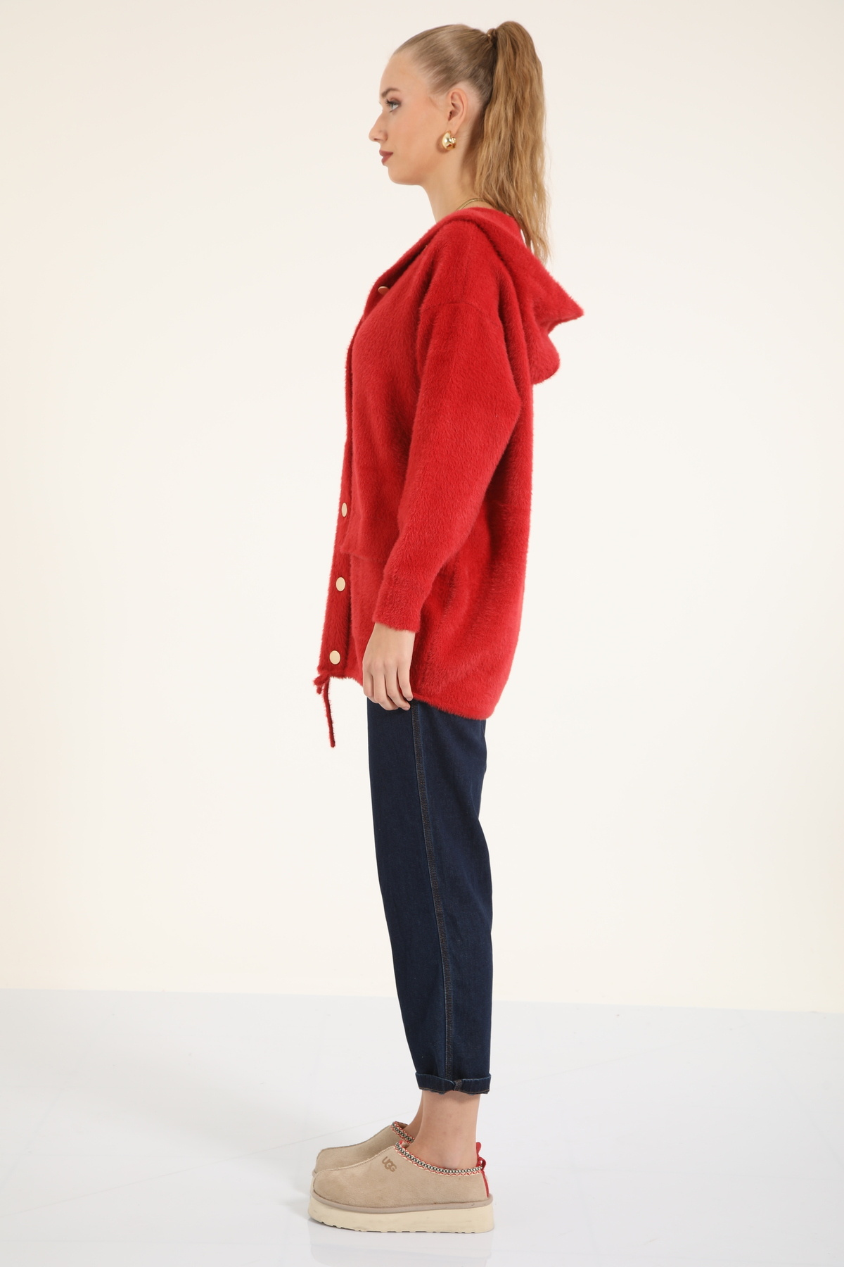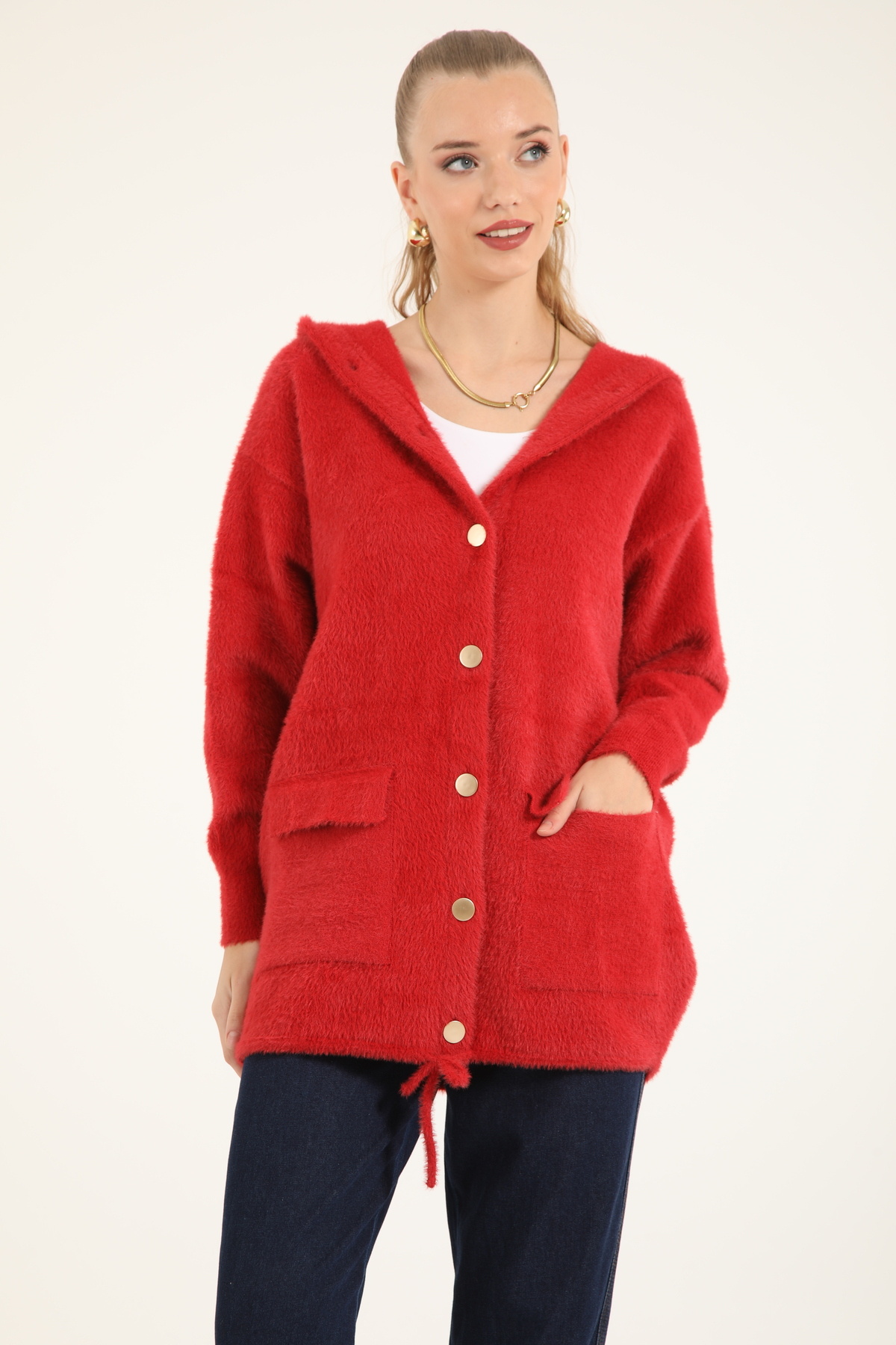 40936 - Şık Rahat Kapüşonlu Kadın Triko Ceket 40936 - Şık Rahat Kapüşonlu Kadın Triko Ceket L/XL