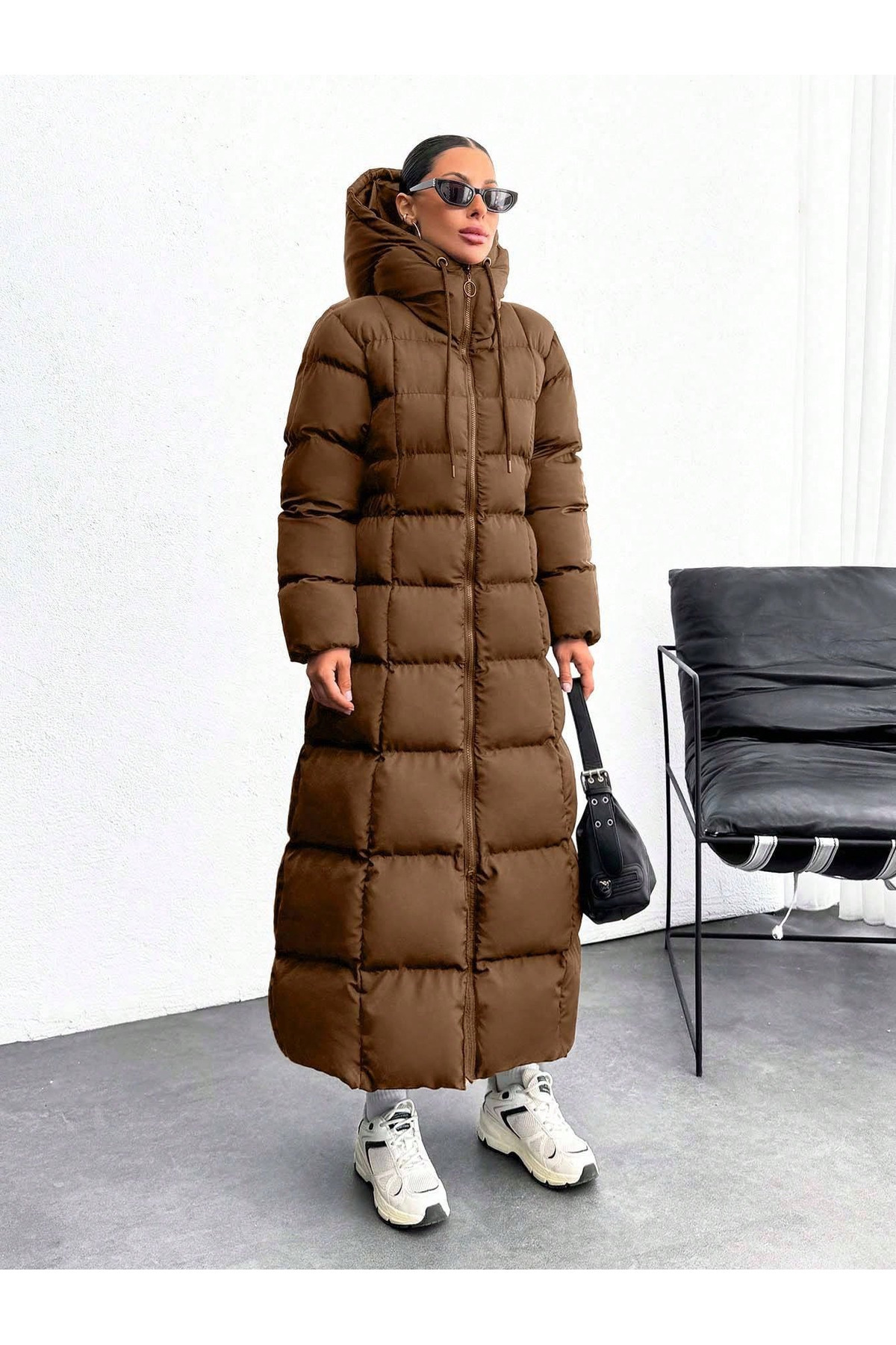 Kapüşonlu Şişme Uzun Kadın Mont Kapüşonlu Şişme Uzun Kadın Mont 6598 XL