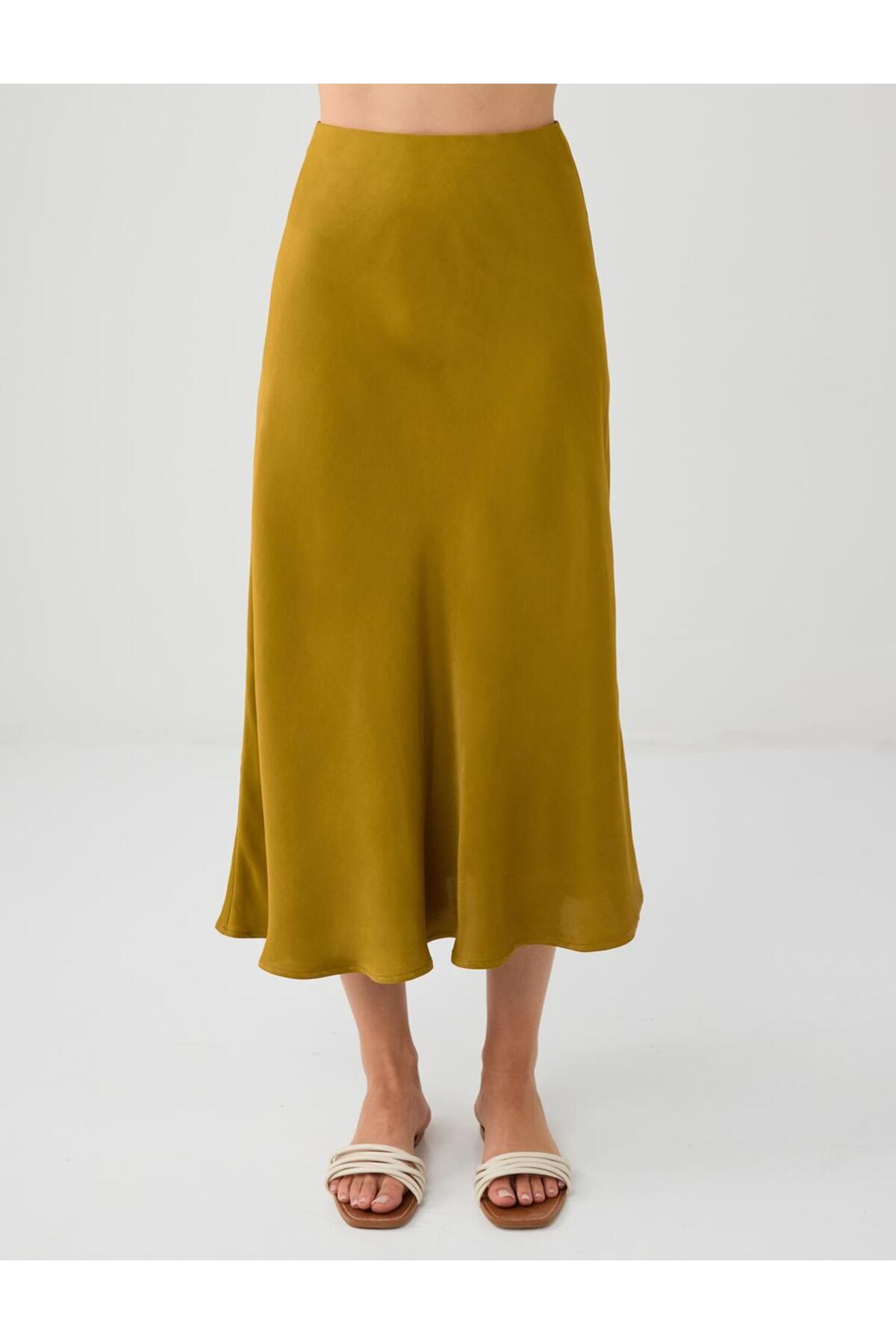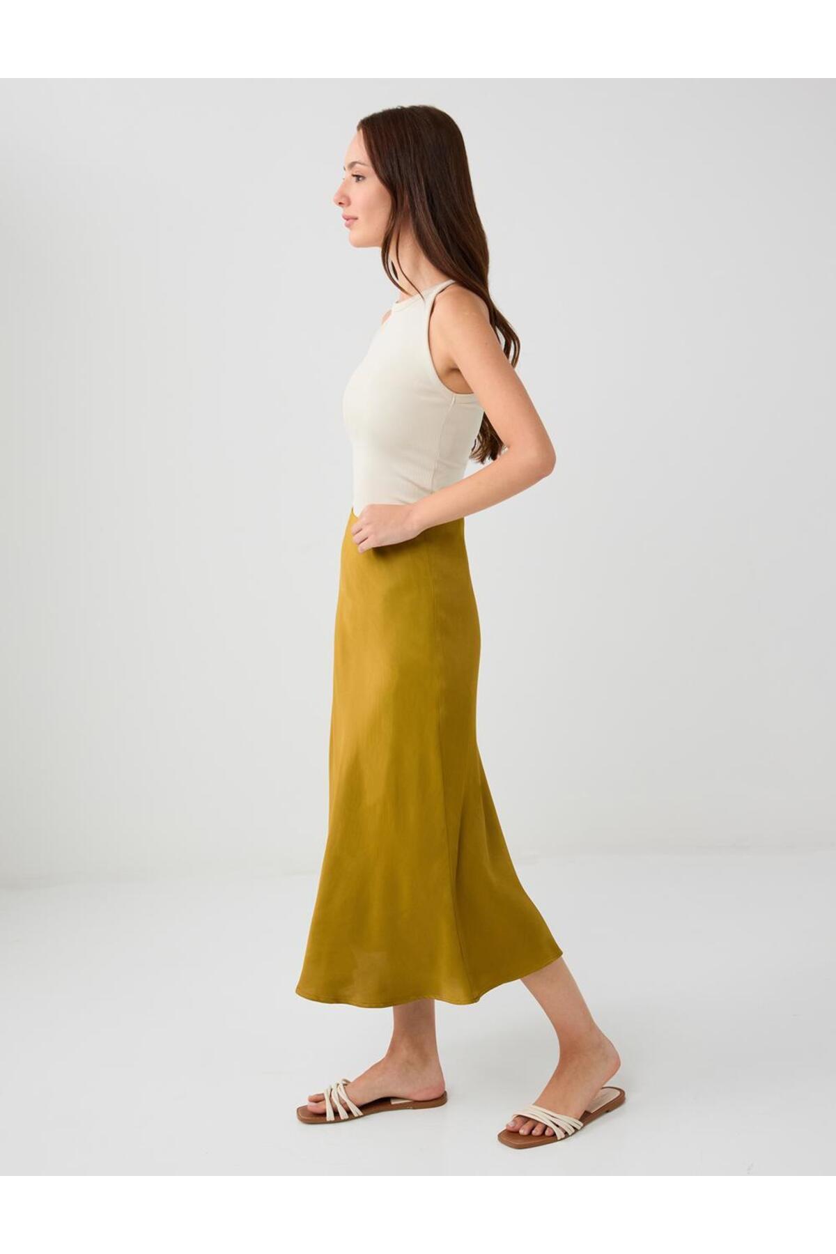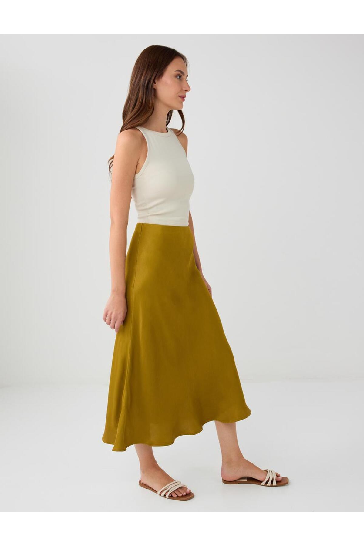 Yağ Yeşili Normal Bel Dar Kesim Uzun Saten Etek Yağ Yeşili Normal Bel Dar Kesim Uzun Saten Etek 5WW075105 XL