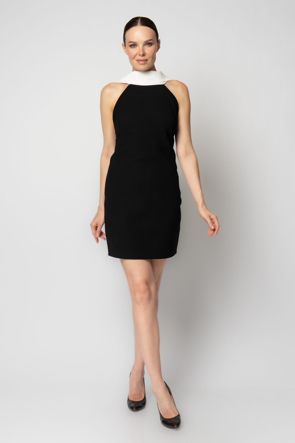 Yakası saçak taş şerit aksesuarlı krep abiye elbise Yakası saçak taş şerit aksesuarlı krep abiye elbise 7377 44