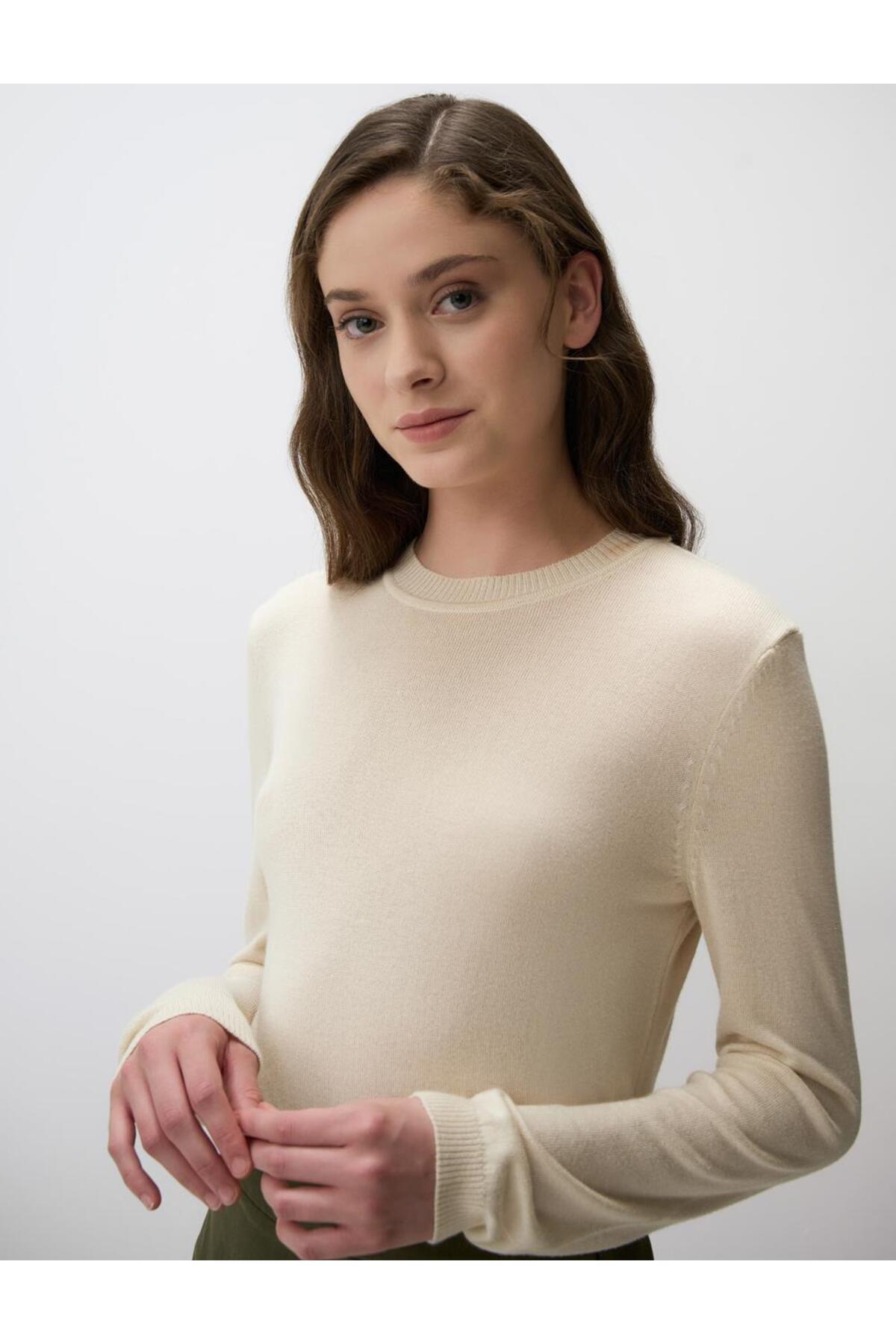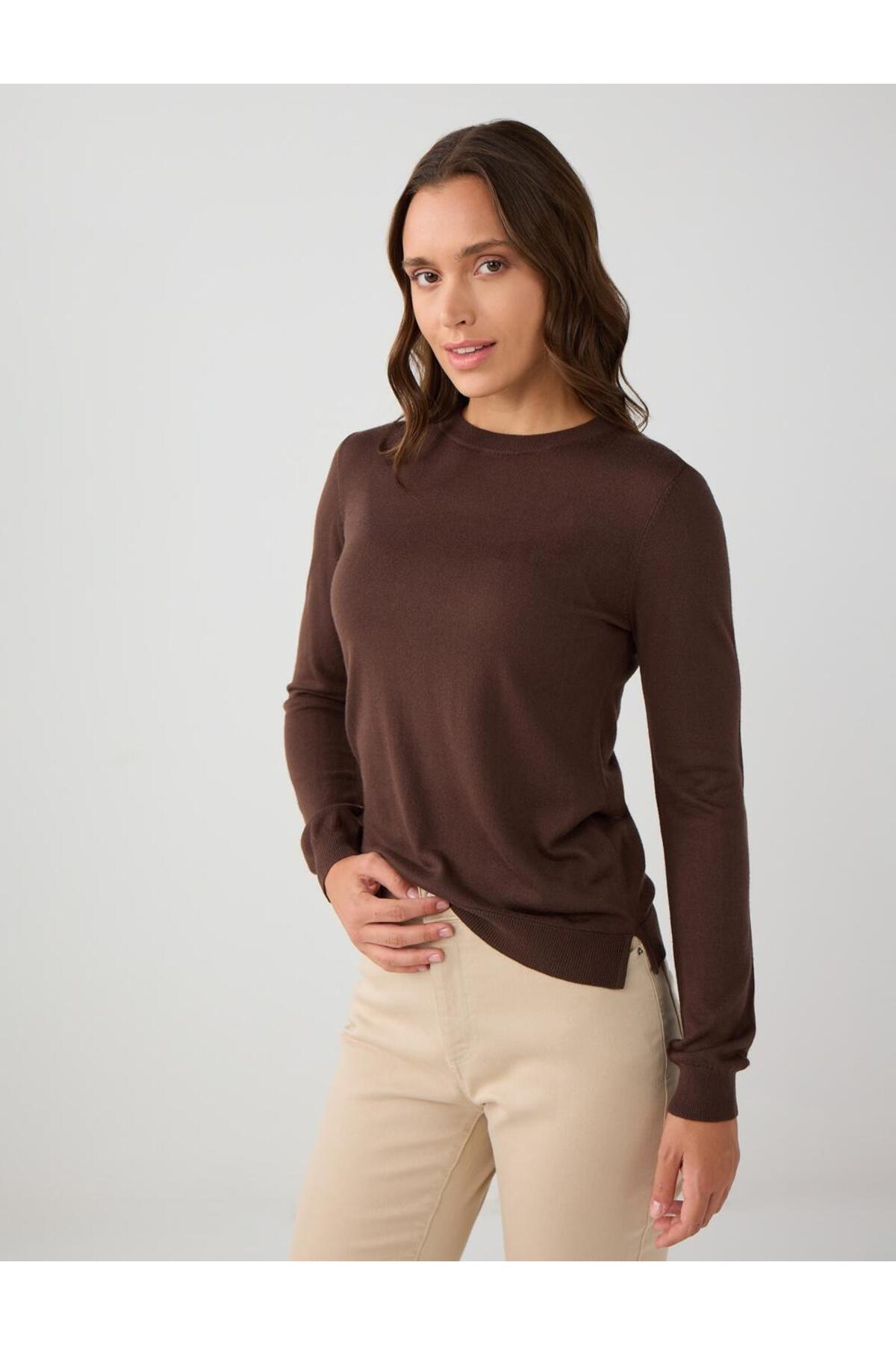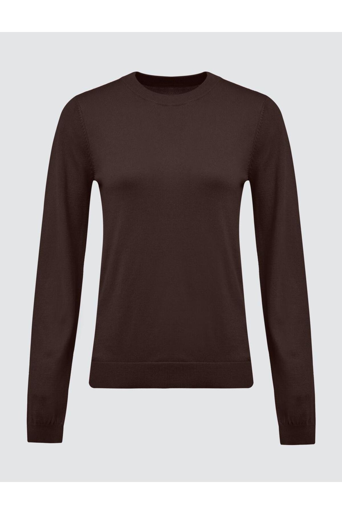 Acı Kahve Bisiklet Yaka Uzun Kollu Yün Karışımlı Triko Kazak Acı Kahve Bisiklet Yaka Uzun Kollu Yün Karışımlı Triko Kazak 5WW134578 XL