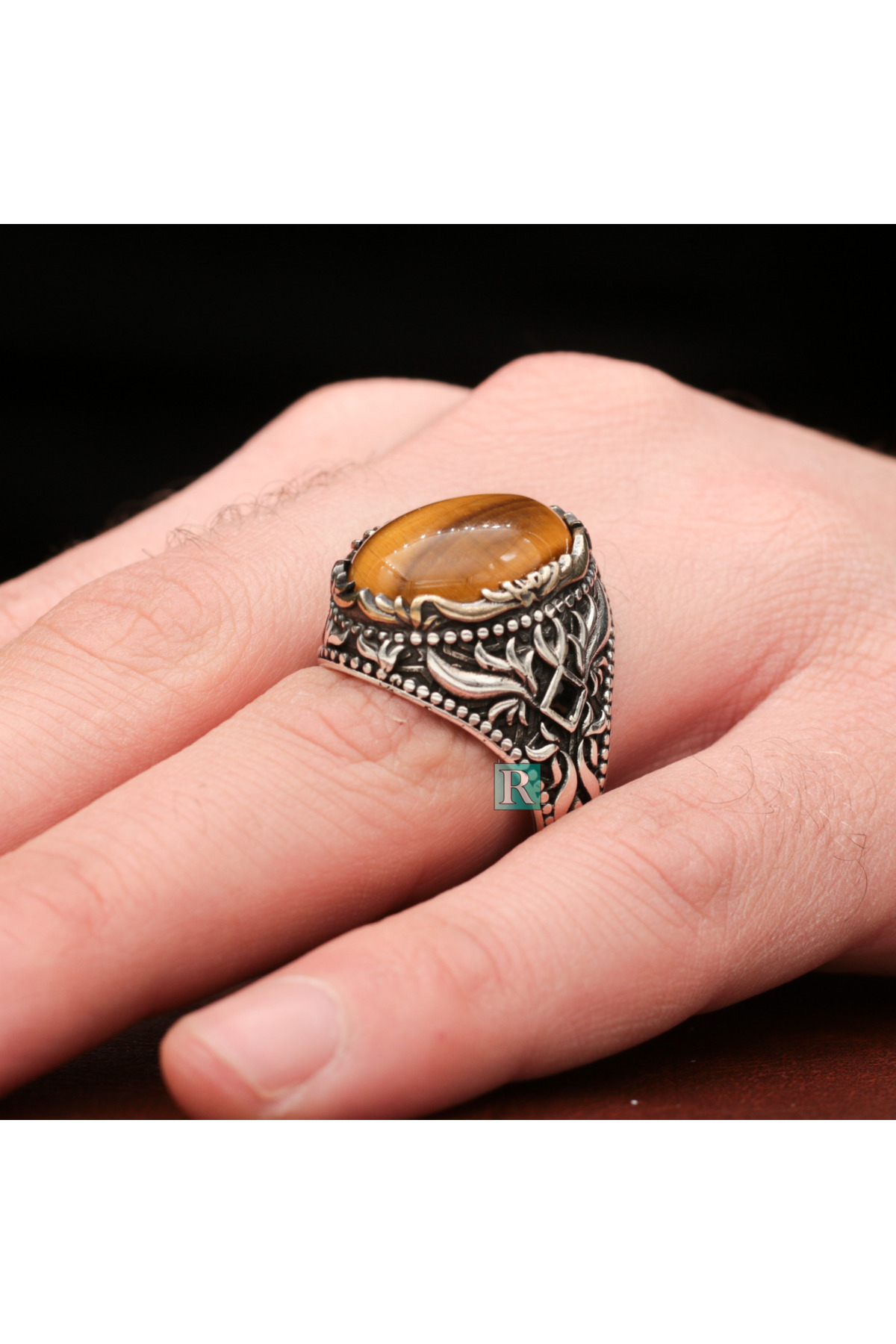 925 Ayar Gümüş Kaplan Gözü Taşlı Erkek Yüzük 925 Ayar Gümüş Kaplan Gözü Taşlı Erkek Yüzük TK-MS-00029 32