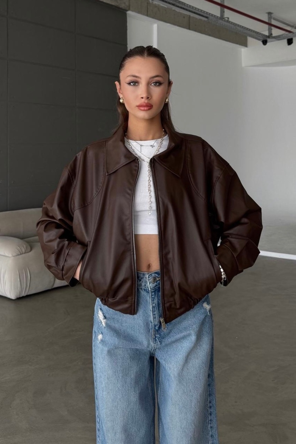 PB Yeni Sezon Oversize Bomber Bordo Kadın Deri Ceket PB Yeni Sezon Oversize Bomber Bordo Kadın Deri Ceket kdn-ckt03 L