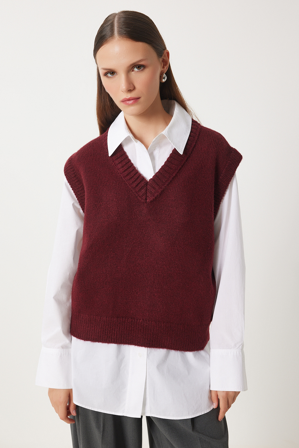 2292 V Yaka Sıfır Kol Süeter Bordo 2292 V Yaka Sıfır Kol Süeter Bordo 26K1123UST012 Standart