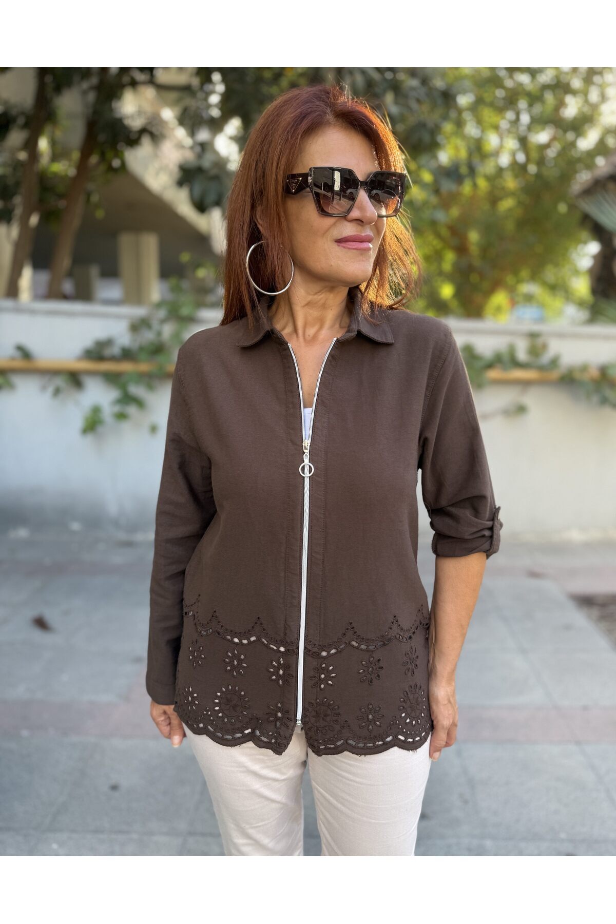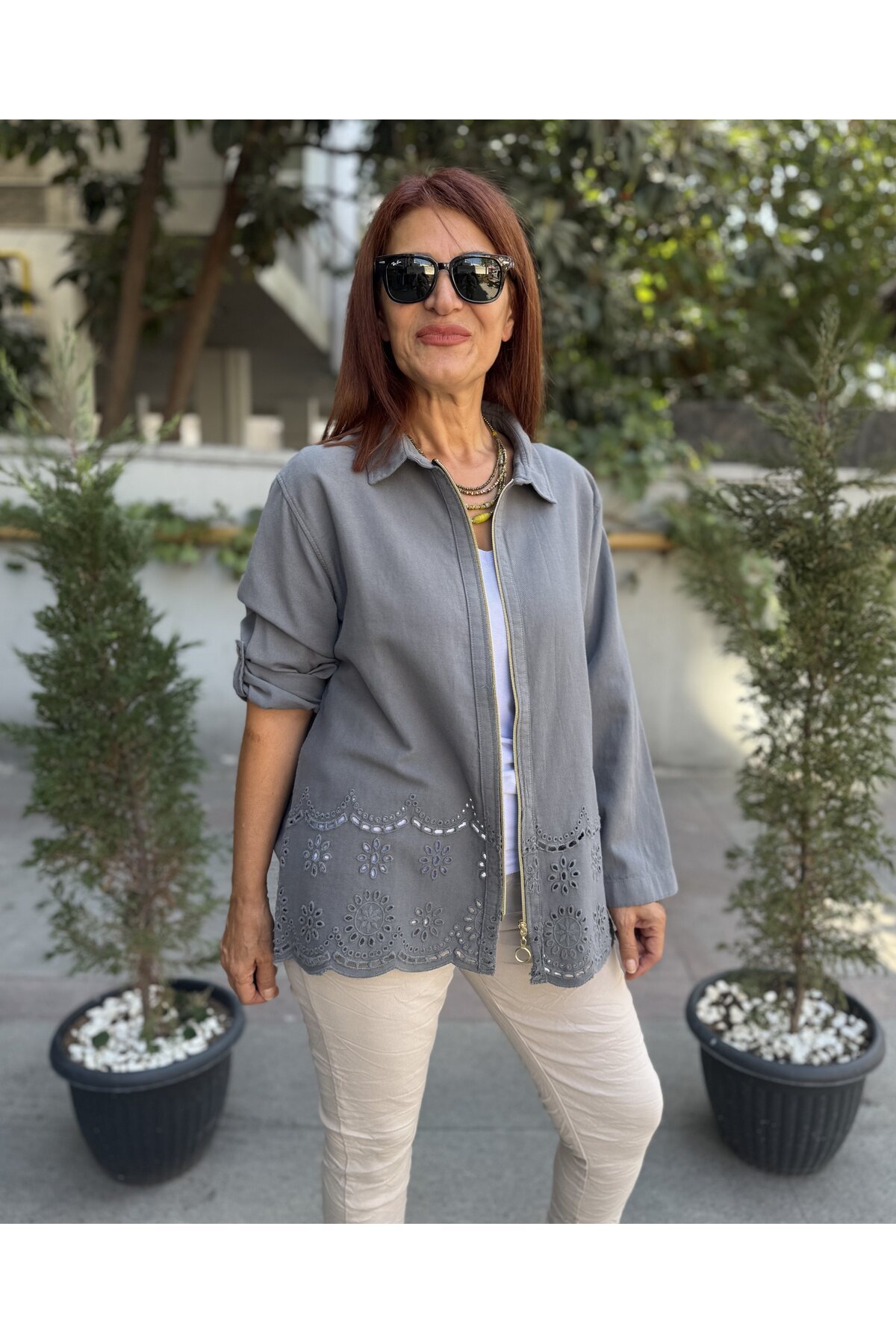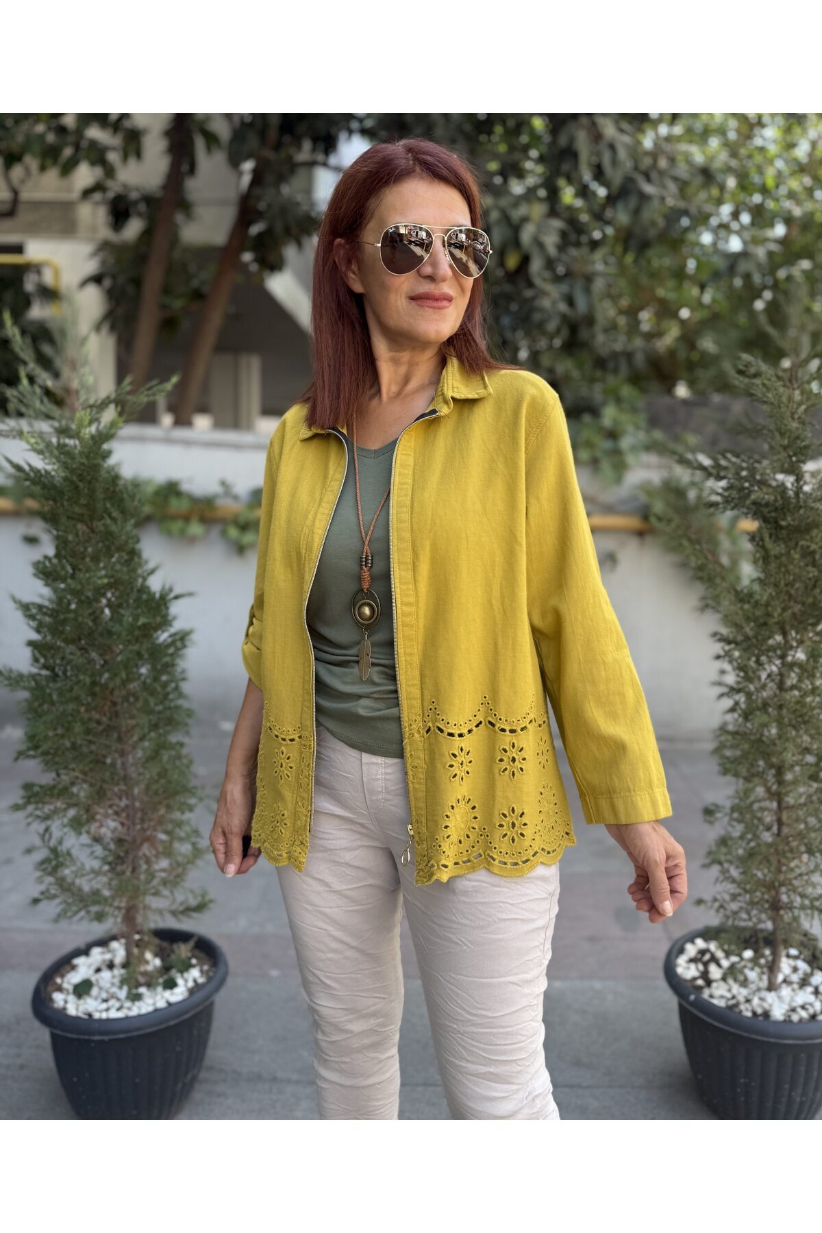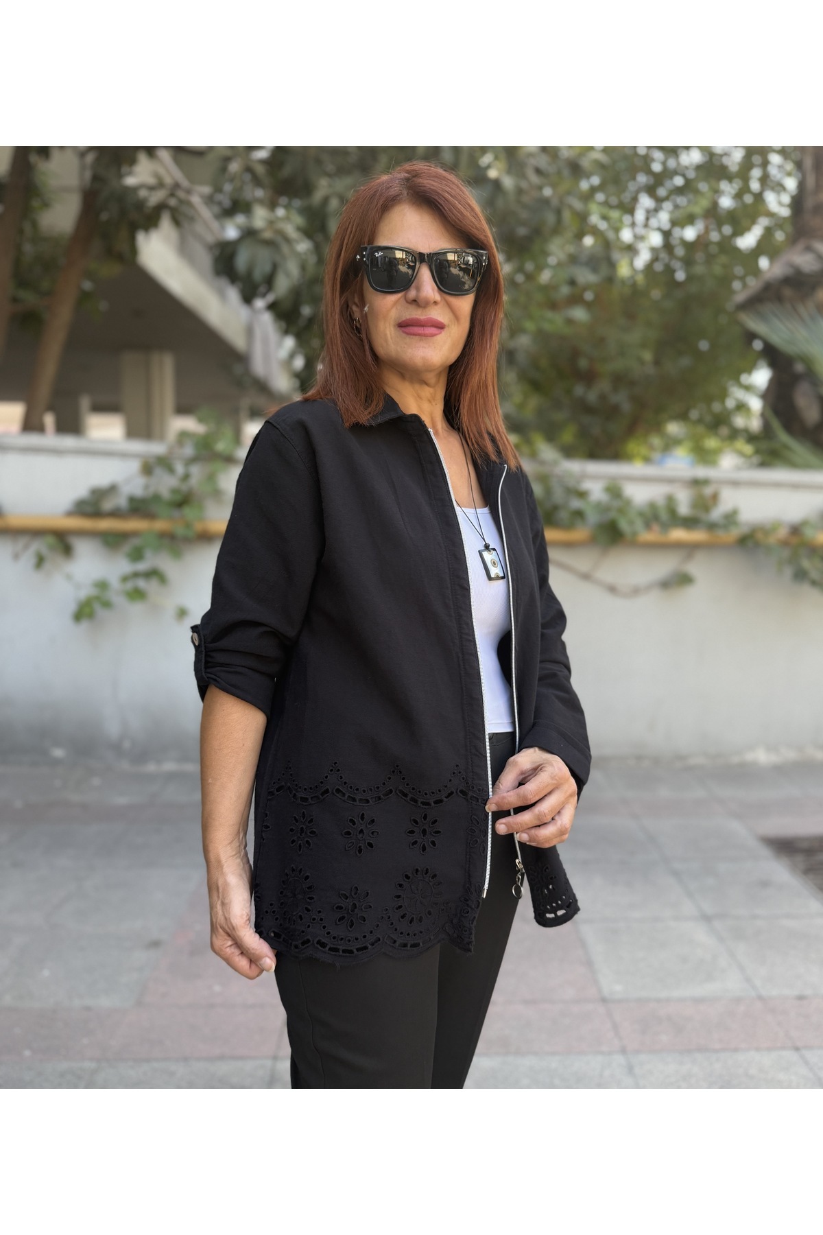 Eteği Güpür Fermuarlı Ceket Siyah Eteği Güpür Fermuarlı Ceket Siyah GR1ZZ3FVUH XL
