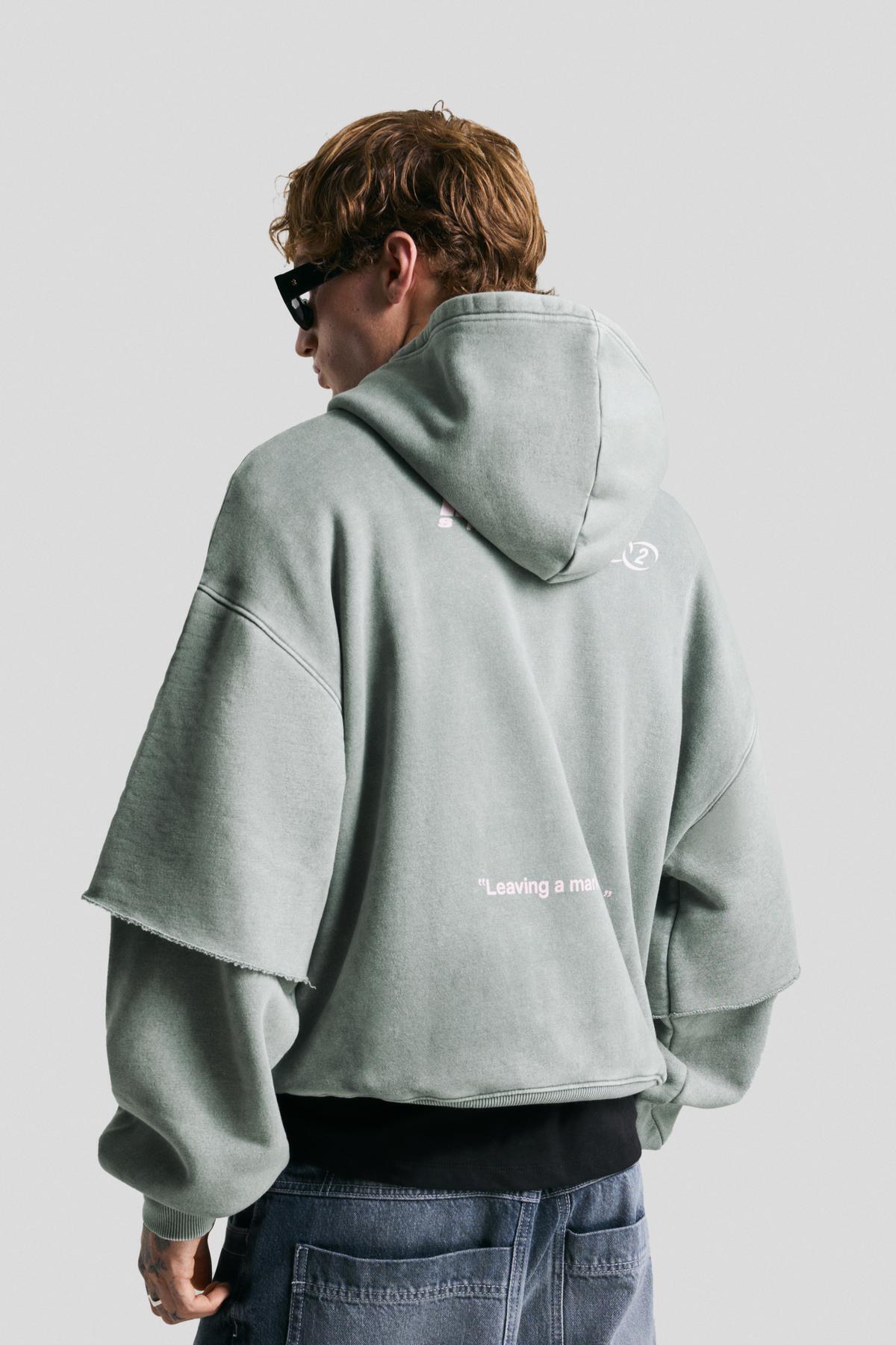 Çift kollu baskılı kapüşonlu sweatshirt Çift kollu baskılı kapüşonlu sweatshirt 07376732 XL