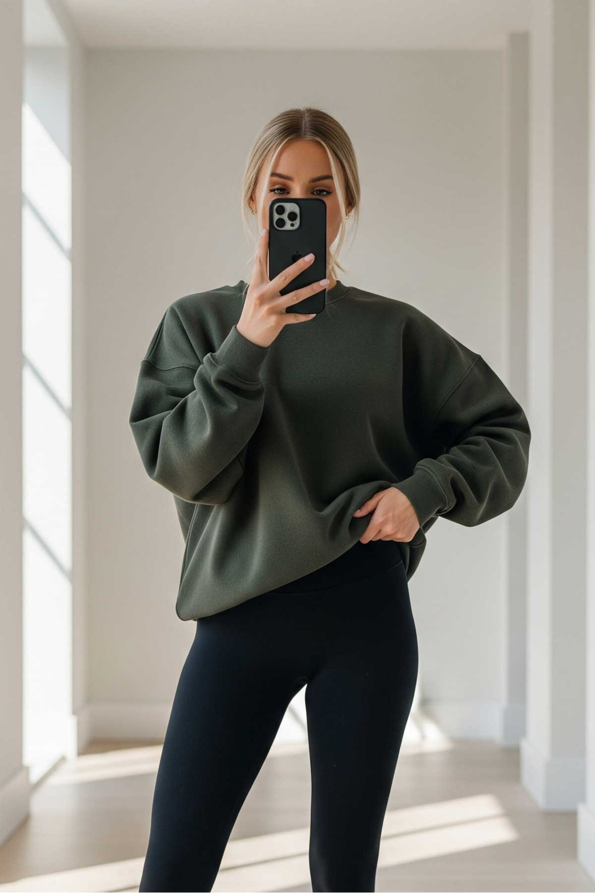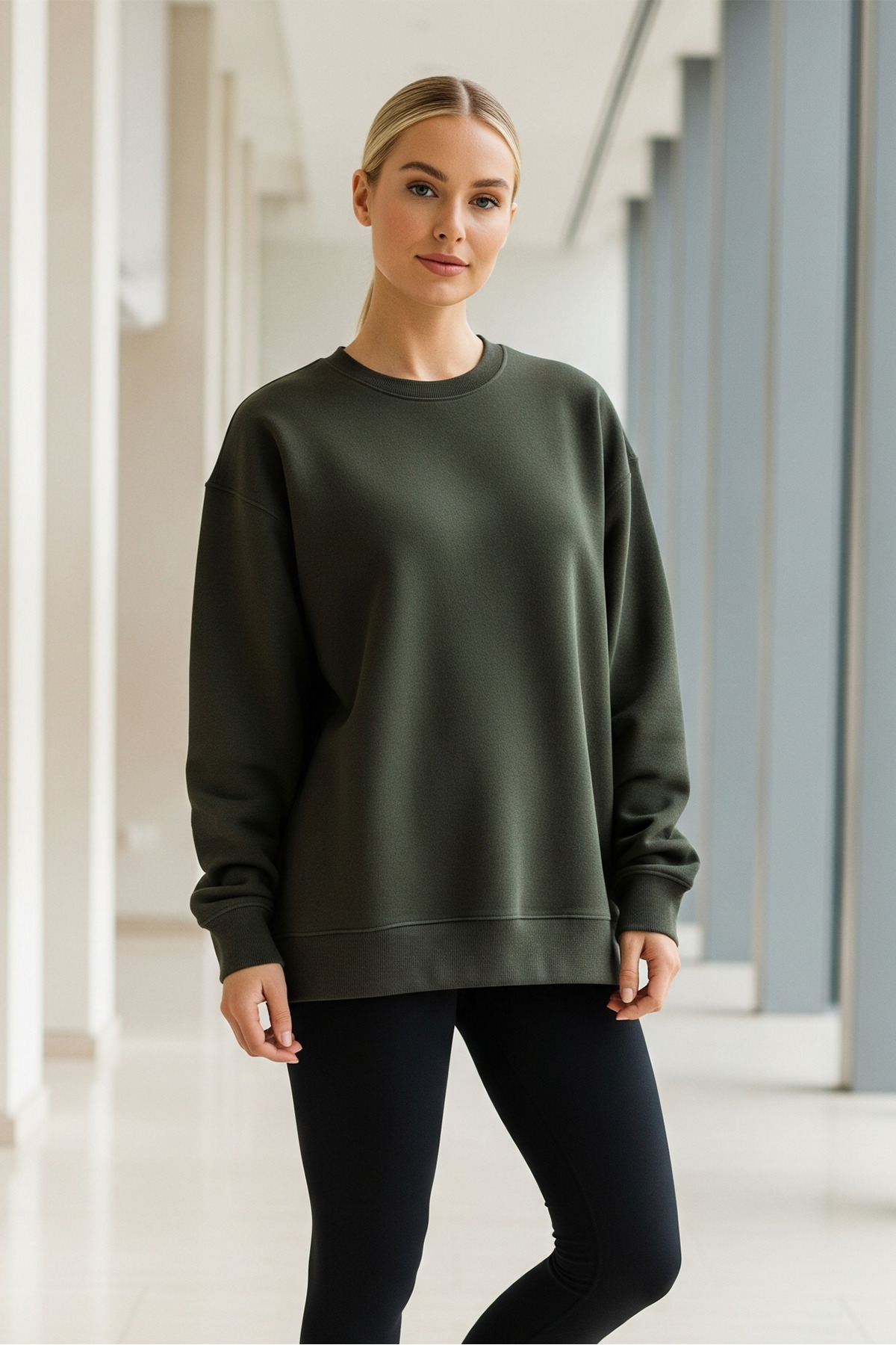 Kadın Oversize Kışlık Salaş Haki Sweatshirt Kadın Oversize Kışlık Salaş Haki Sweatshirt Ayna-SWT.0011 2XL