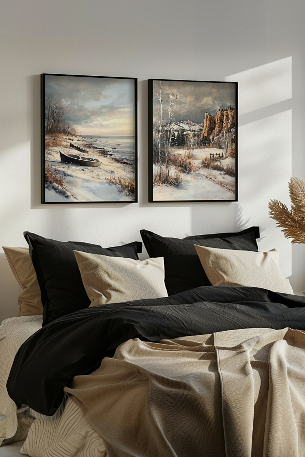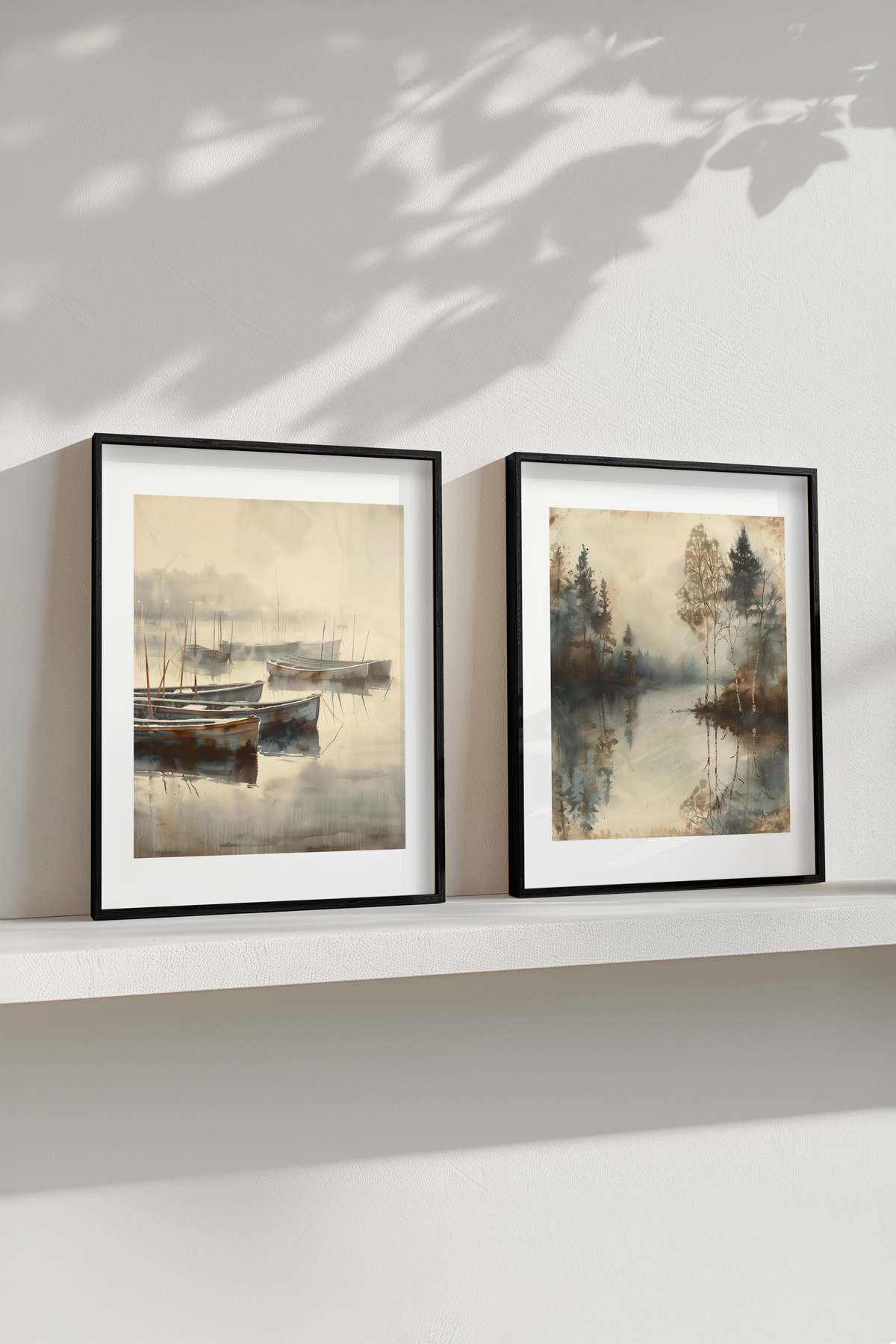 Suluboya Efektli Siyah Çerçeveli Kayıklı Orman Göl Manzaralı İkili Tablo Seti Yuna387 Suluboya Efektli Siyah Çerçeveli Kayıklı Orman Göl Manzaralı İkili Tablo Seti Yuna387 50 x 70