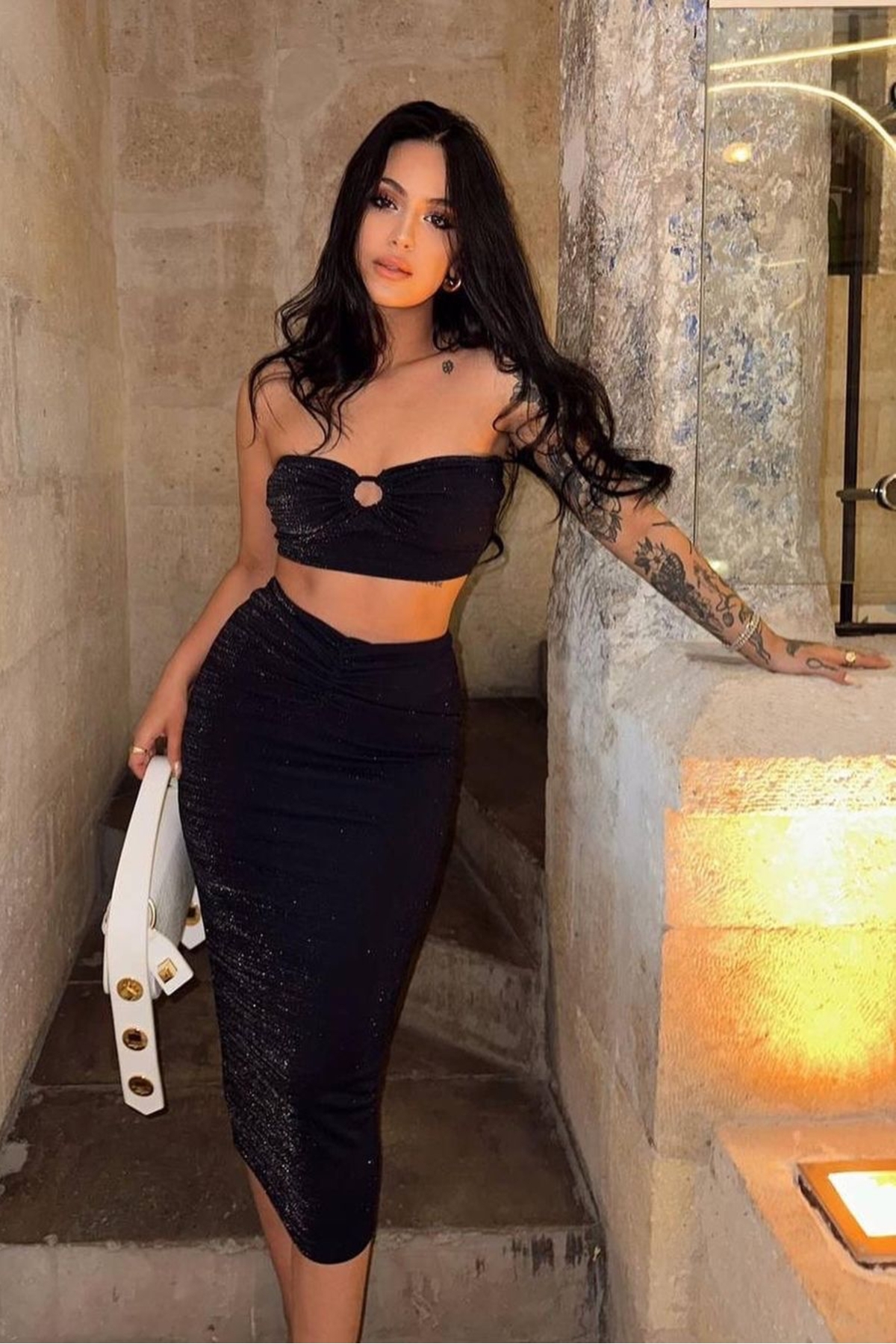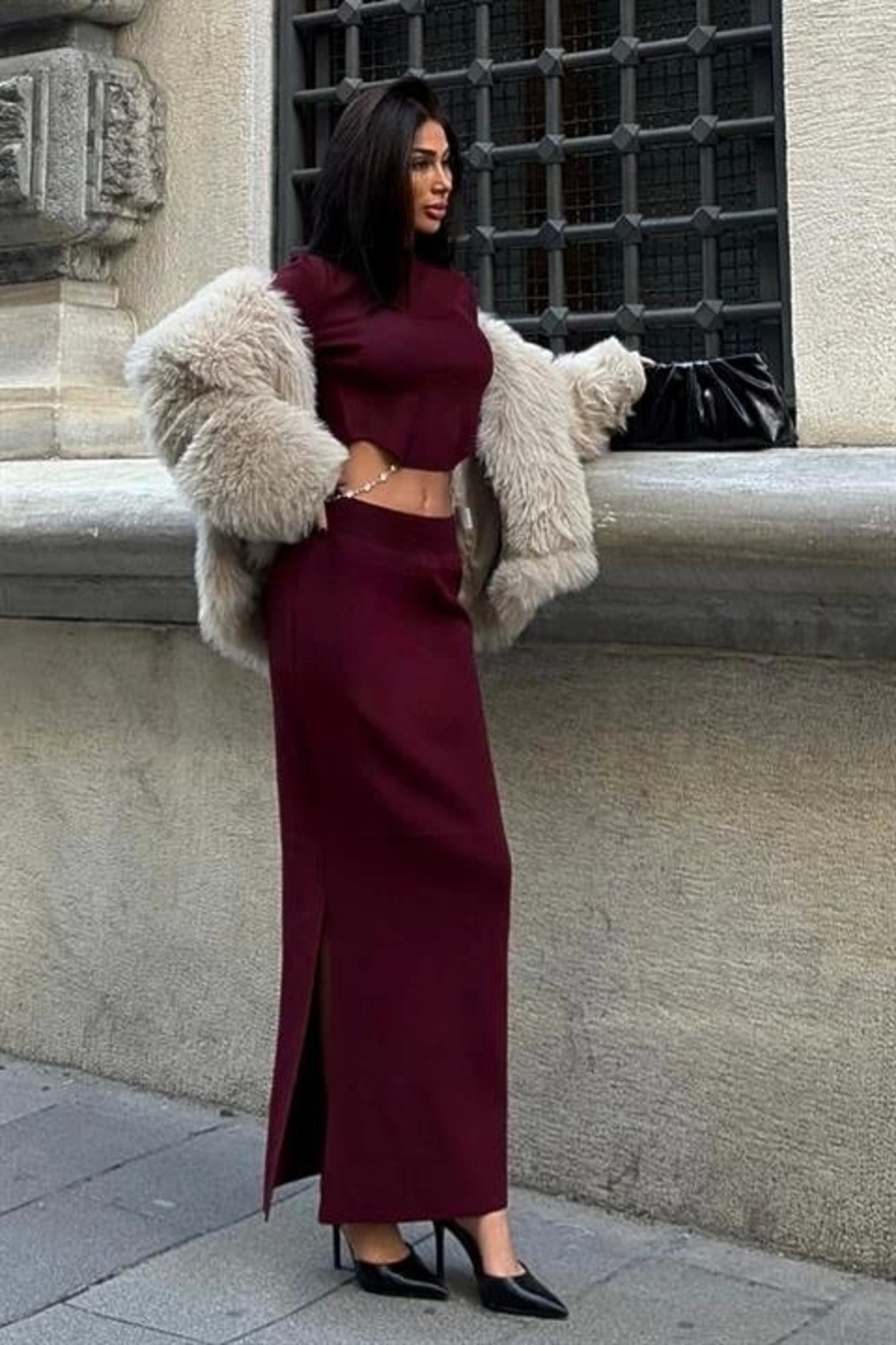Maje Sırt Zincir Detay Etek Bluz Takım 9884 Maje Sırt Zincir Detay Etek Bluz Takım 9884 S5K9884 Standart