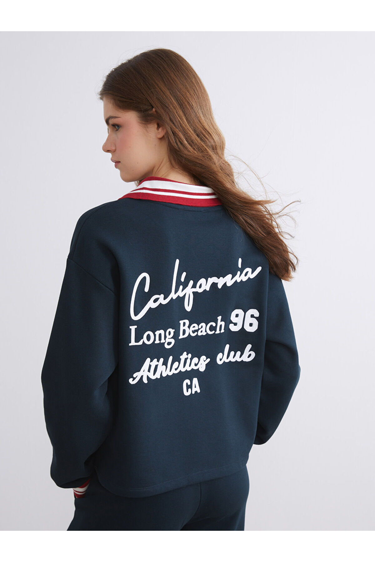 Polo Yaka Nakışlı Kadın Kalın Sweatshirt Polo Yaka Nakışlı Kadın Kalın Sweatshirt 4856711 XL