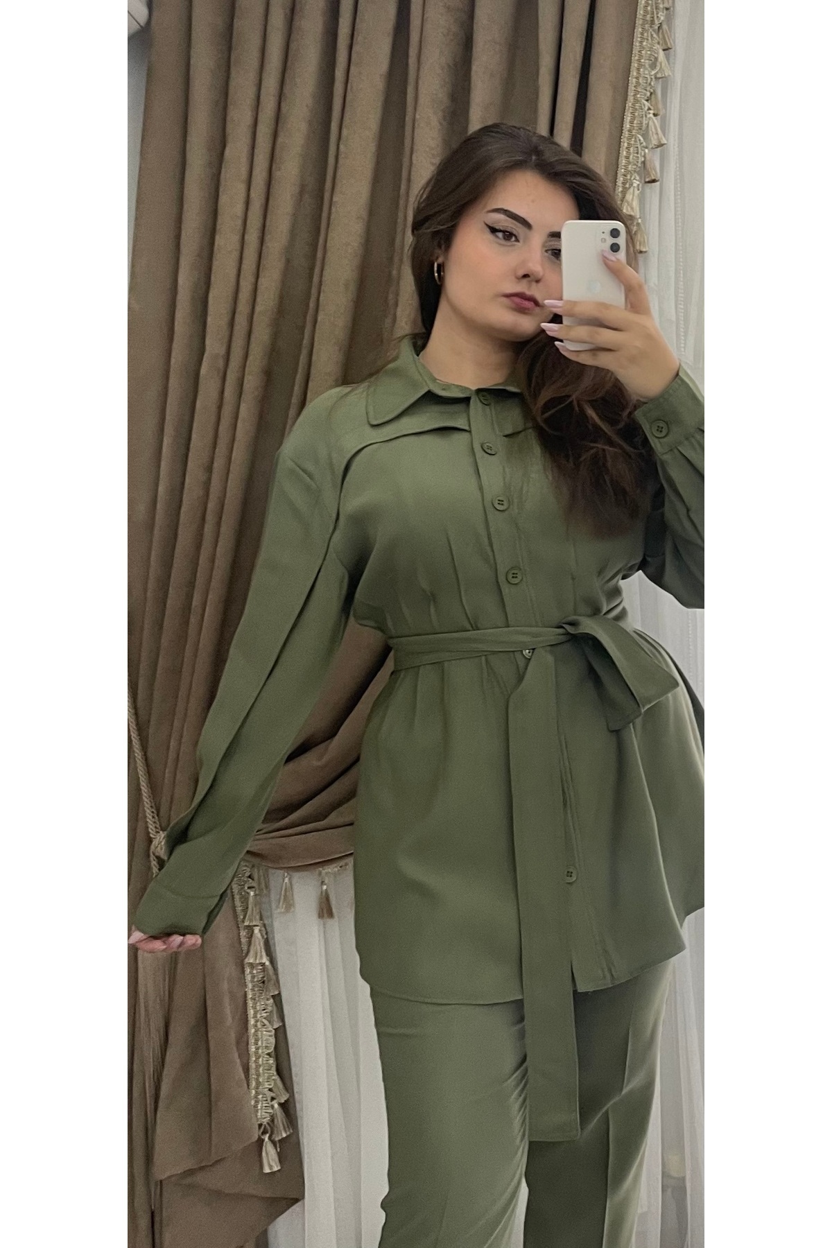 Zümrüt Belden Kuşaklı Tunik Pantolon Takım Zümrüt Belden Kuşaklı Tunik Pantolon Takım 0147 3