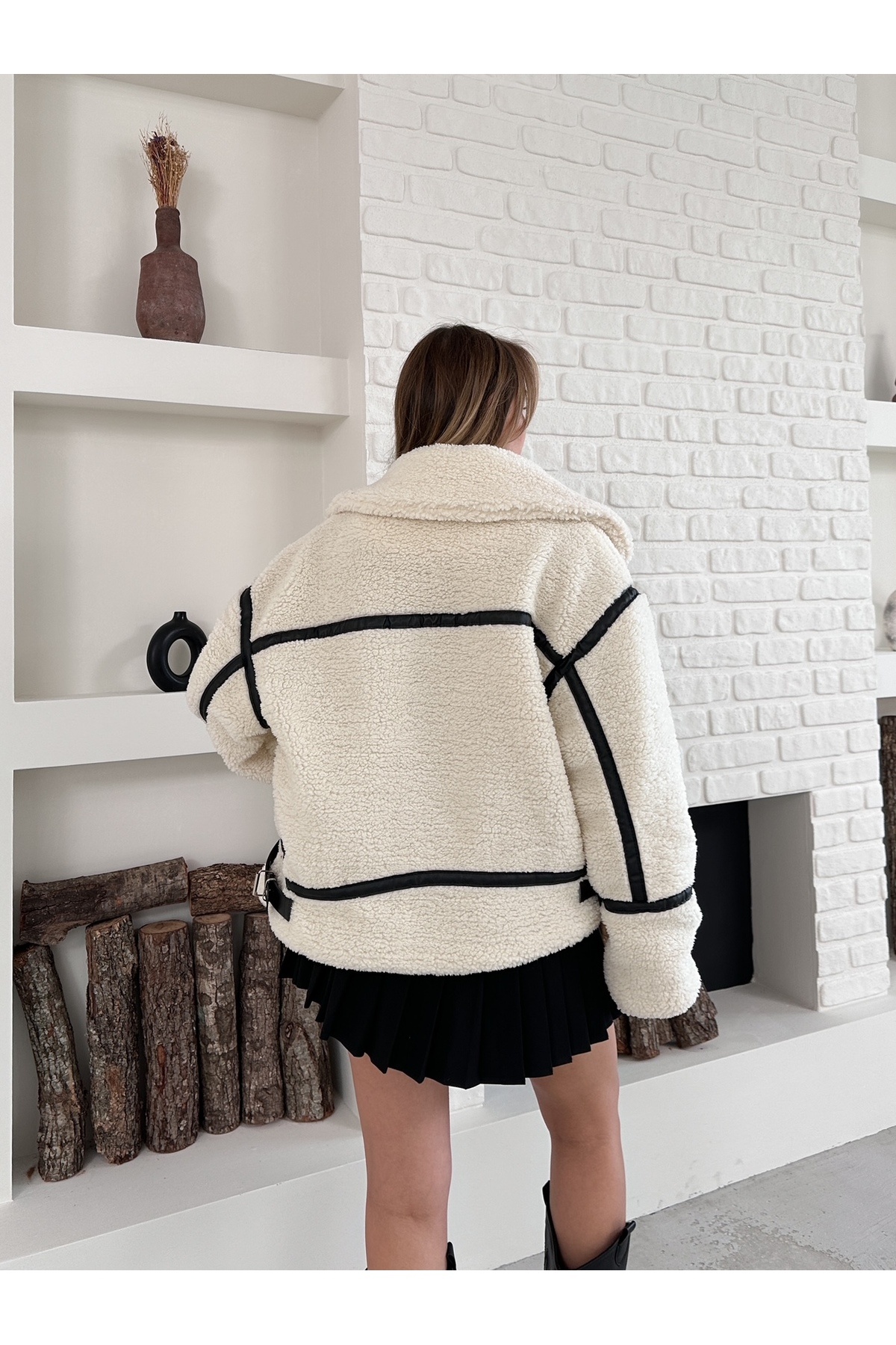Peluş Fermuarlı Oversize Kuzu Mont Peluş Fermuarlı Oversize Kuzu Mont VR5680943 L