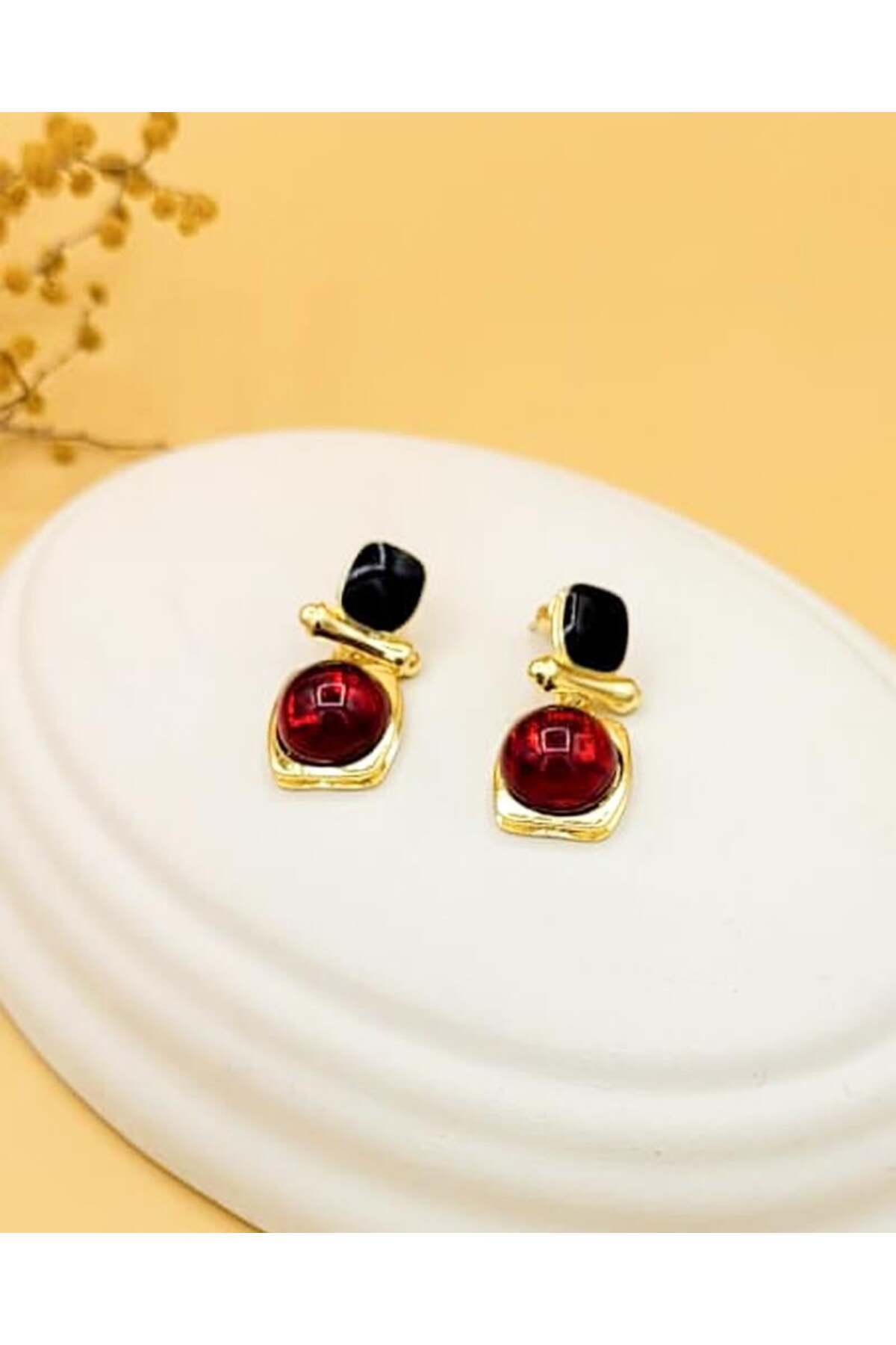 Siyah Mineli Bordo Taş Etnik Kare Pirinç Küpe Siyah Mineli Bordo Taş Etnik Kare Pirinç Küpe NV2290 تک سایز