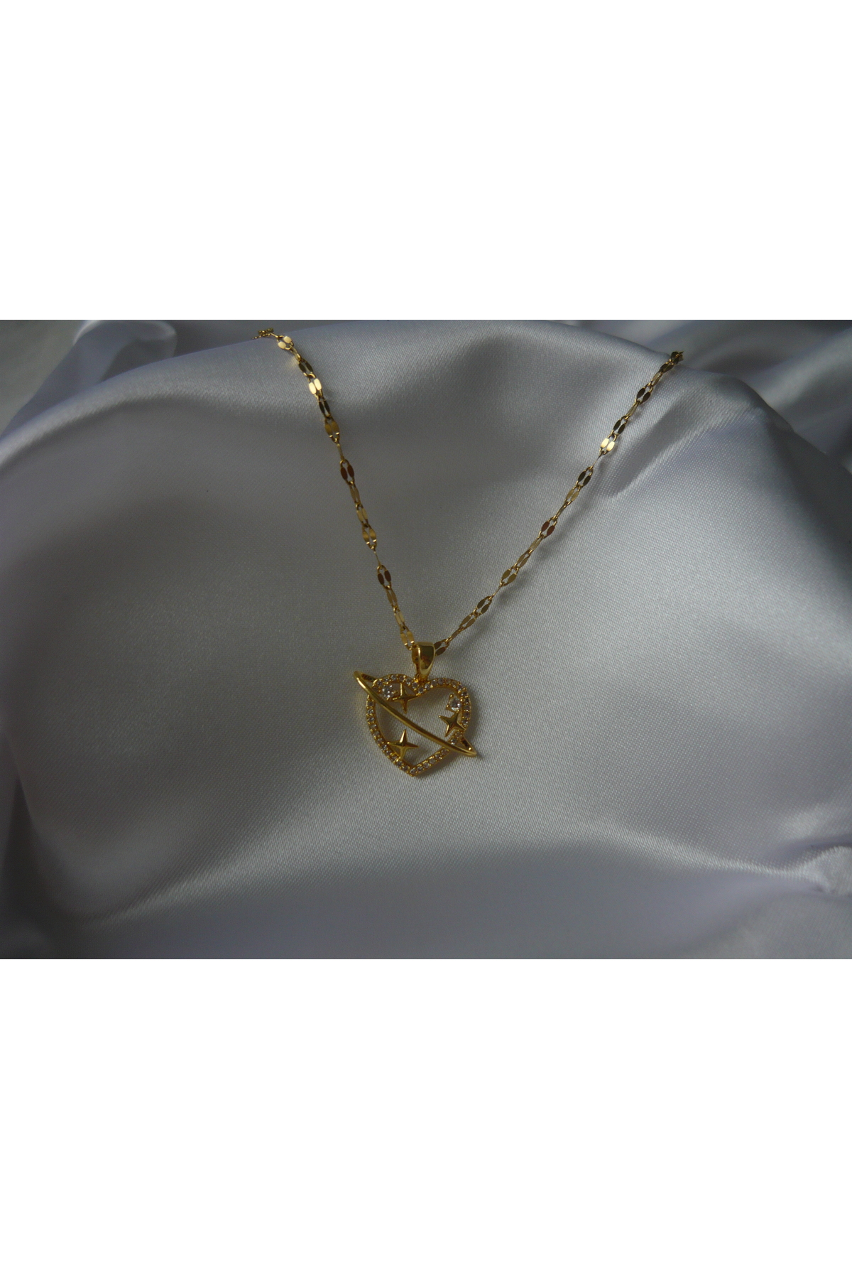 Çengelli Taşlı Kalp Çelik Gold Kolye Çengelli Taşlı Kalp Çelik Gold Kolye 122 0