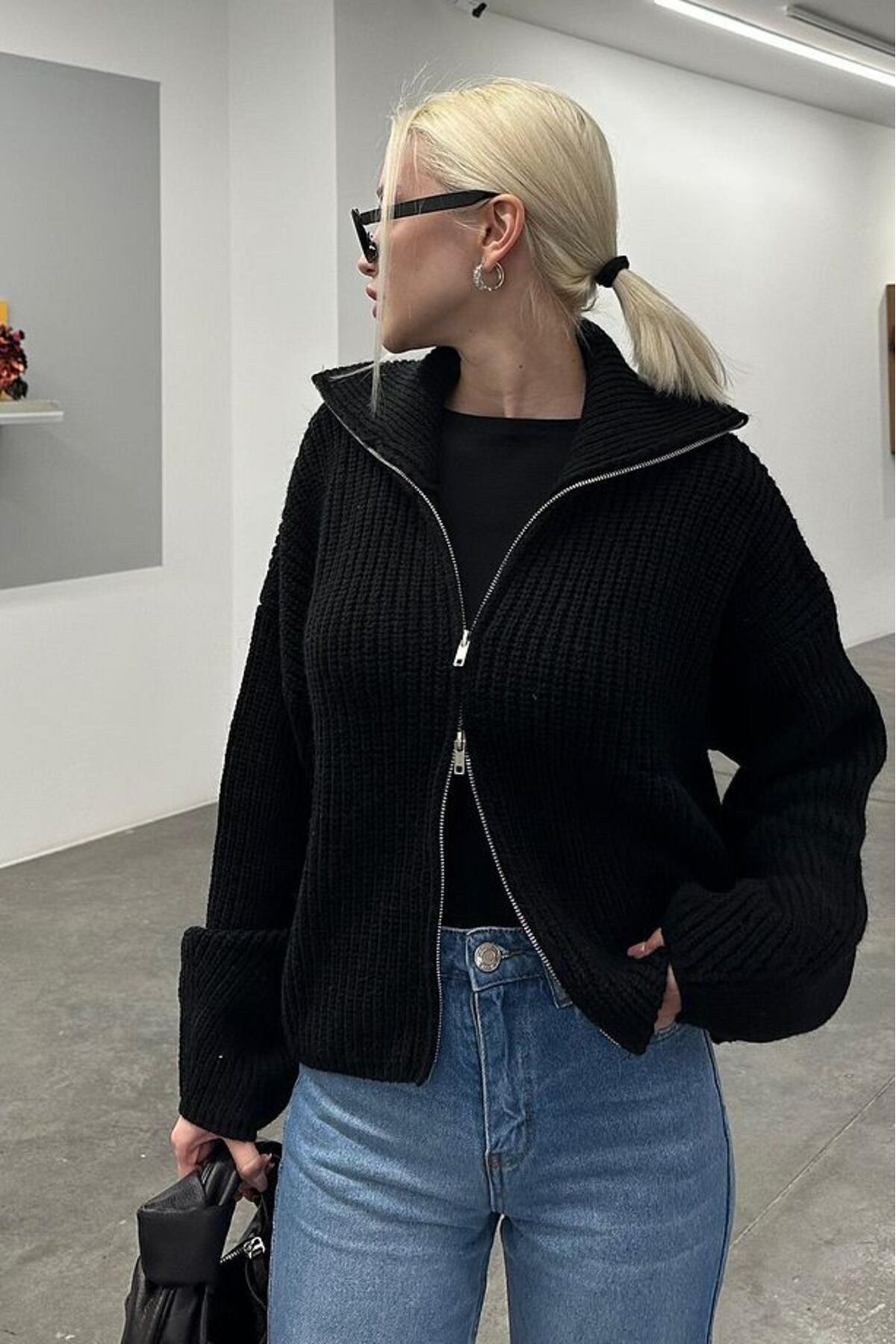 Çift Fermuarlı Basic Triko Hırka Çift Fermuarlı Basic Triko Hırka nms7002 Standart