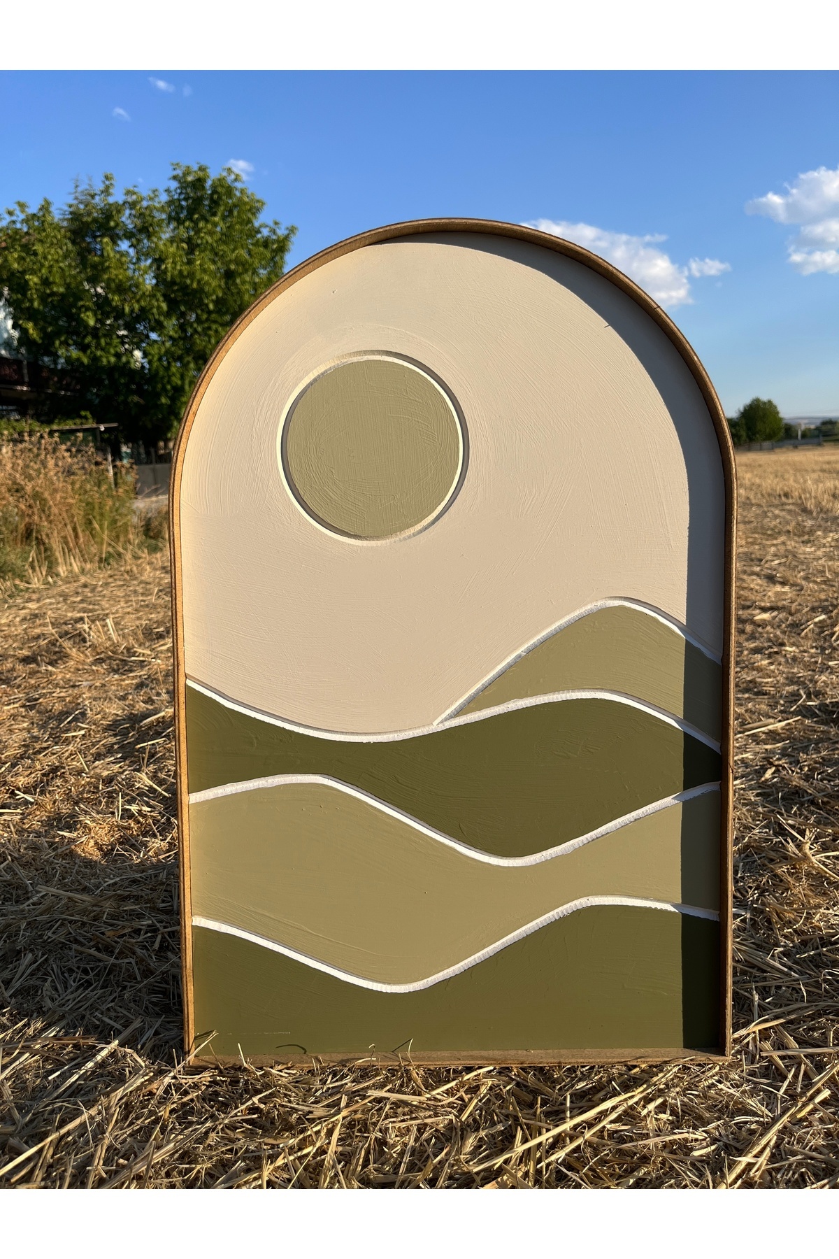 MOUNTAIN AND MOON GREEN AHŞAP BOHEM TABLO DAĞLI VE AYLI YEŞİLİN TONLARIN AHŞAP BOHEM TABLO MOUNTAIN AND MOON GREEN AHŞAP BOHEM TABLO DAĞLI VE AYLI YEŞİLİN TONLARIN AHŞAP BOHEM TABLO CGL00087 40 x 60