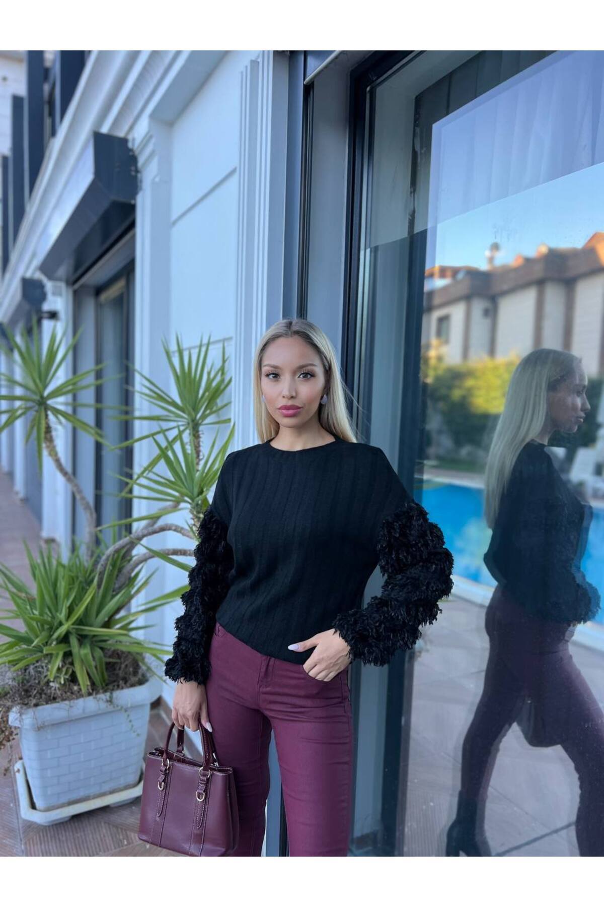 Kolu Kürklü Triko Kazak Kolu Kürklü Triko Kazak 25528 Standart
