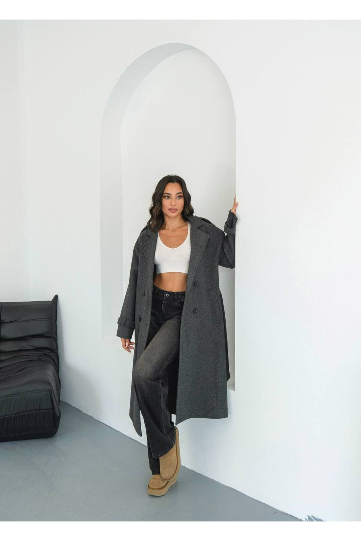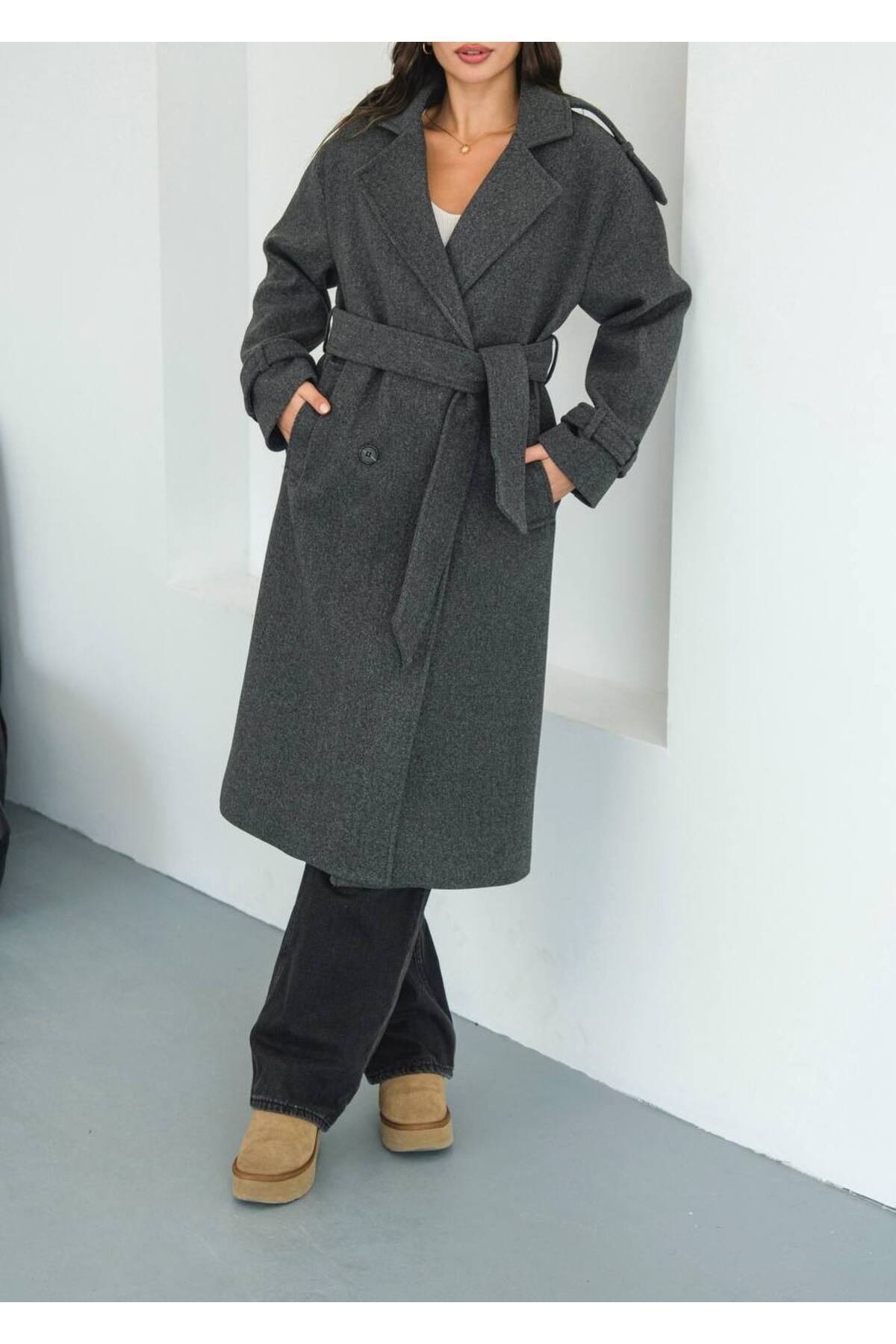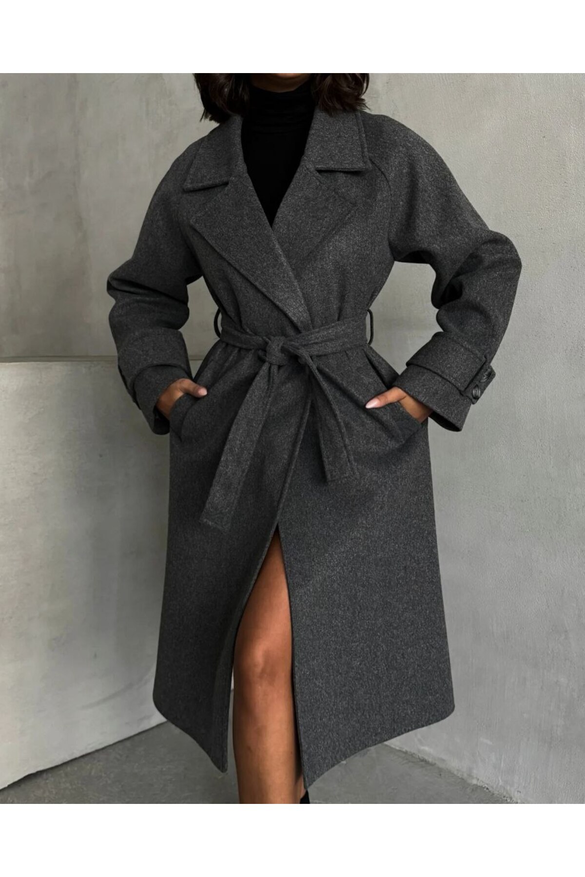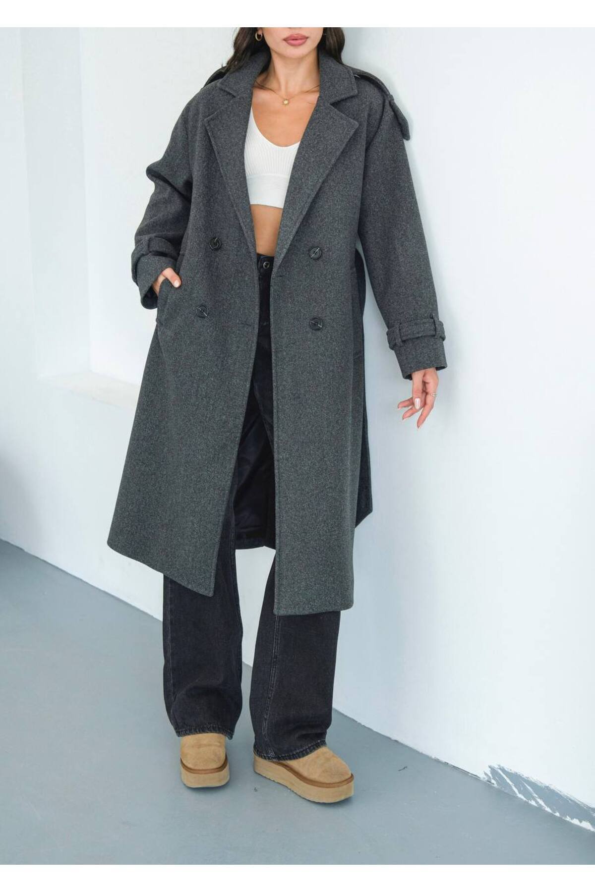 Kadın Oversize Antrasit Premium Kaşe Kaban Kadın Oversize Antrasit Premium Kaşe Kaban my1 L