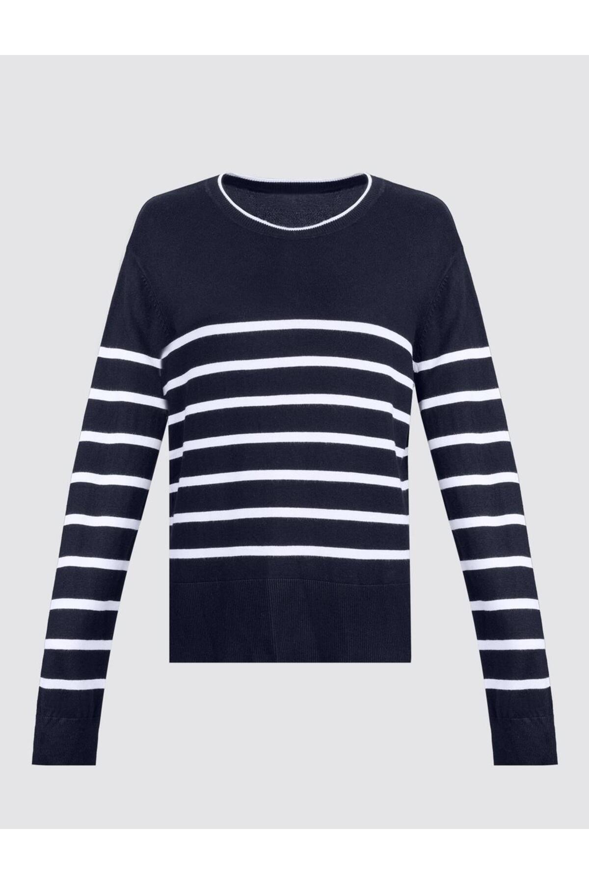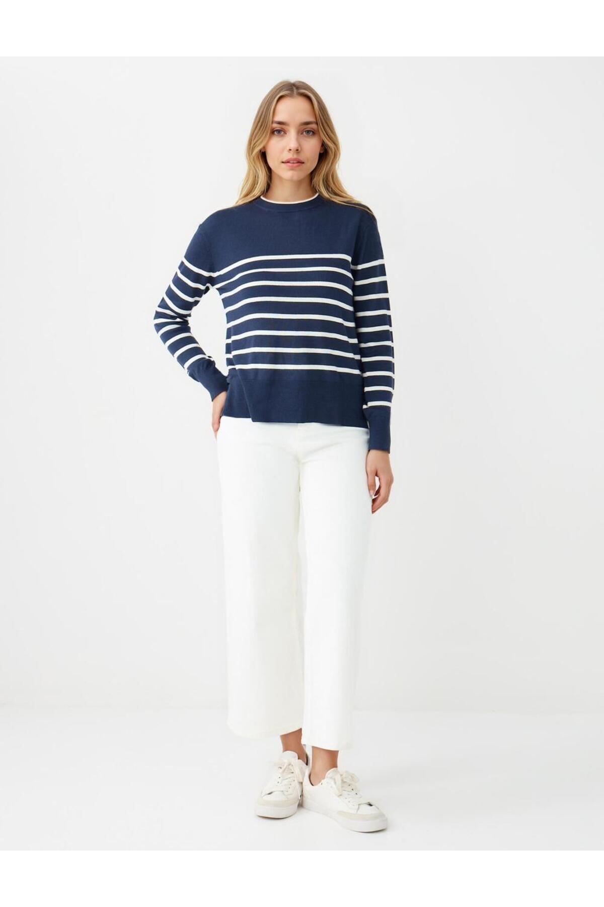 Çızgılı Bisiklet Yaka Uzun Kollu Yün Karışımlı Triko Kazak Çızgılı Bisiklet Yaka Uzun Kollu Yün Karışımlı Triko Kazak 5WW134578 XL
