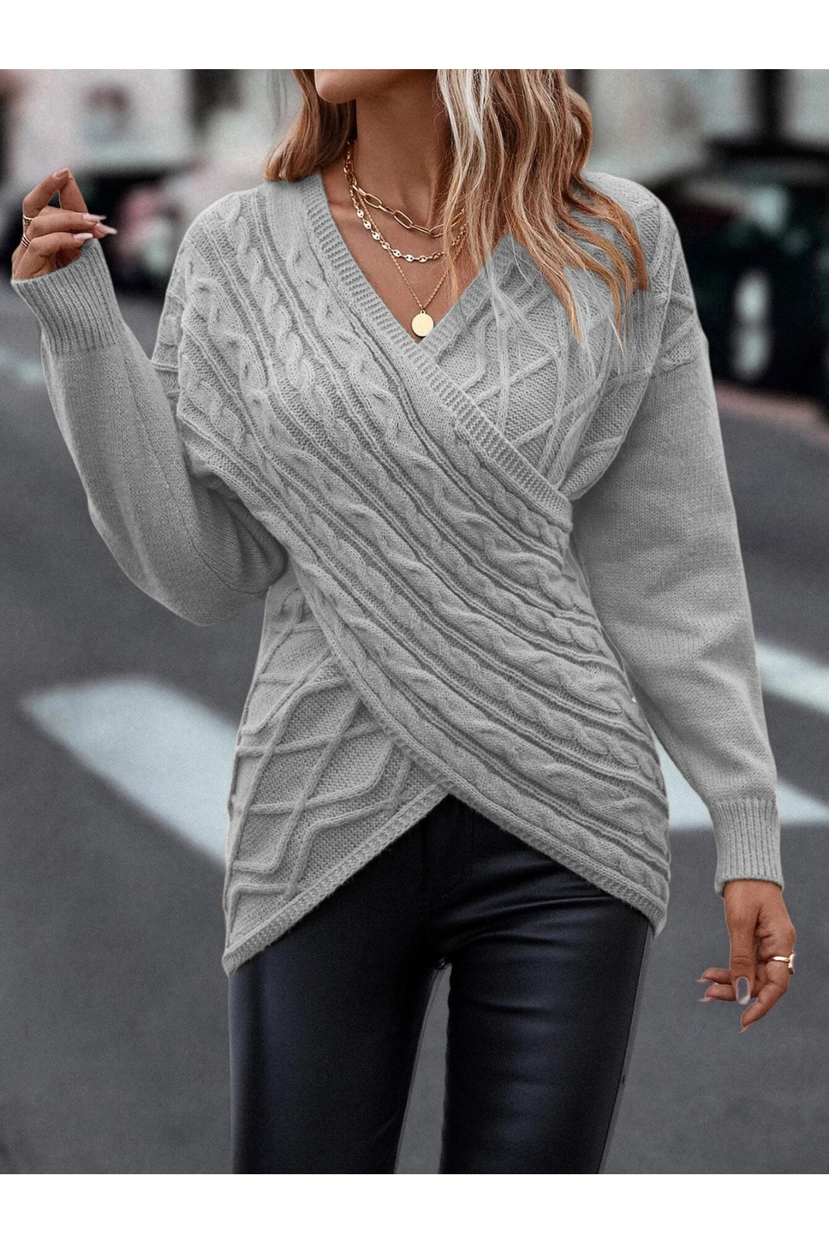 Kruvaze Yaka Yürütme Desenli Saç Örgülü Triko Kaza Kırmızı Kruvaze Yaka Yürütme Desenli Saç Örgülü Triko Kaza Kırmızı hnp-kruvaze XL