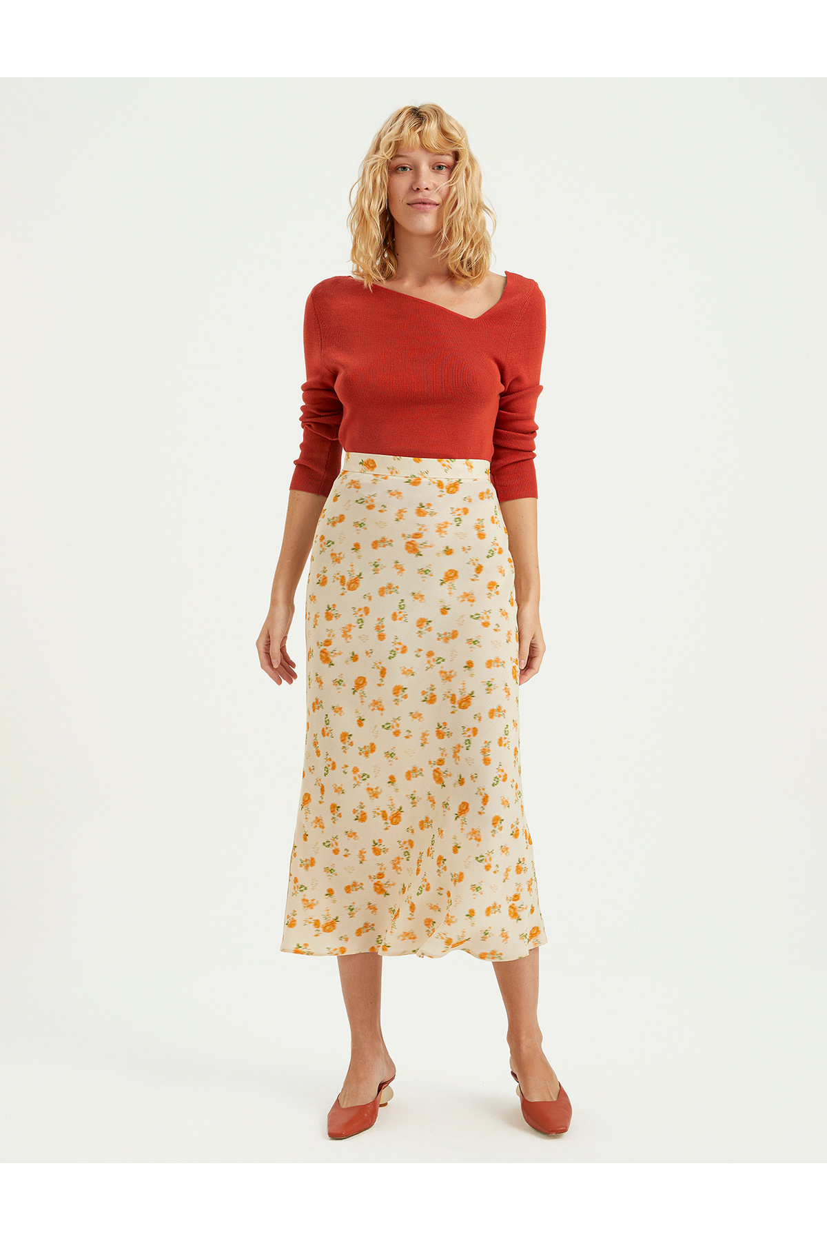 ÇİÇEK DESENLİ VİSKON SATEN ETEK ÇİÇEK DESENLİ VİSKON SATEN ETEK S23S549 42